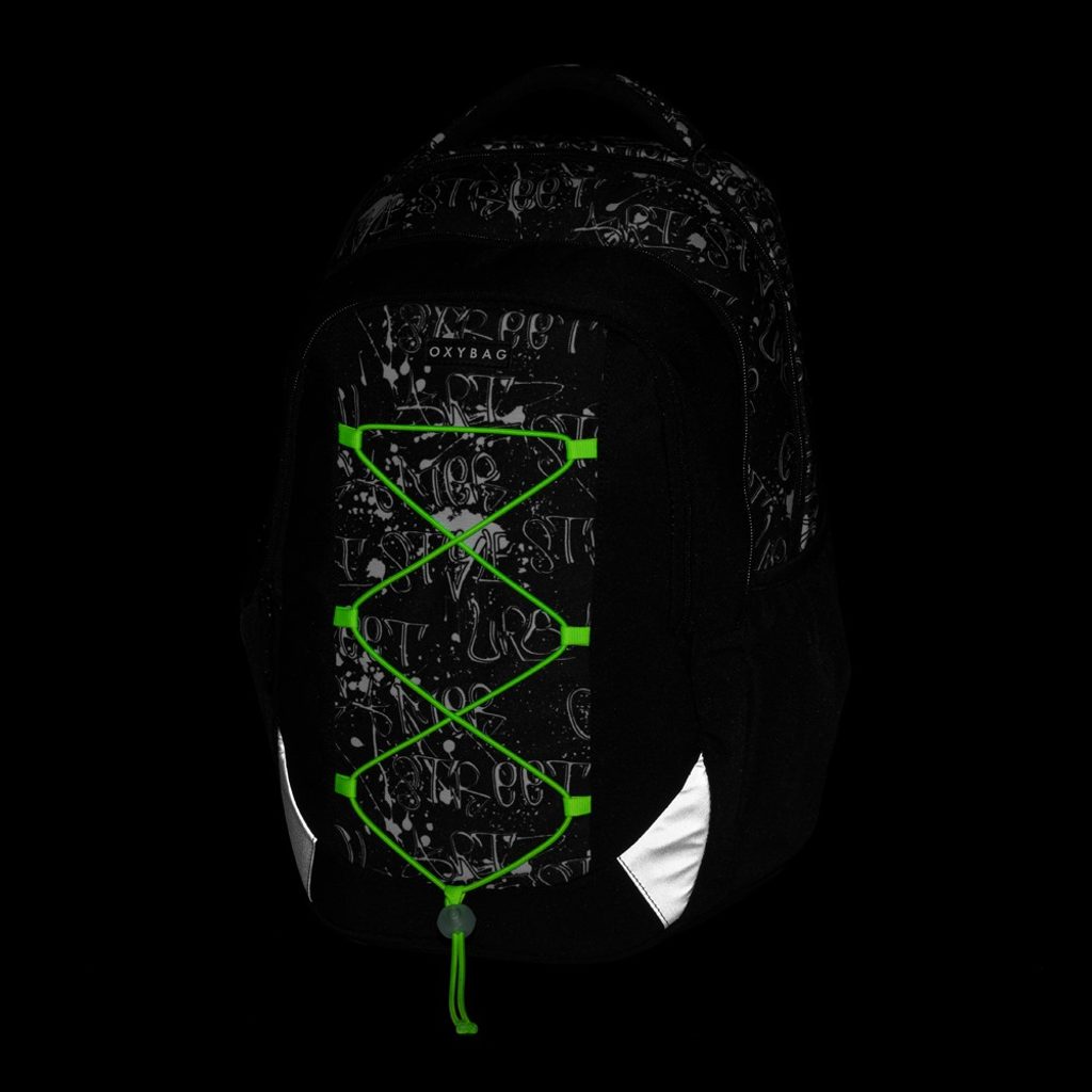 Batoh z řady OXY Touch je ideální volbou pro školáky od 3. třídy, kteří potřebují dostatek prostoru na vše důležité do školy i na volnočasové aktivity. Tříkomorové uspořádání batohu poskytuje dostatek místa na učebnice, sešity, svačinu a další nezbytnosti. Hlavní prostorná komora obsahuje přihrádku na notebook, zatímco přední kapsa je vybavena organizérem a karabinou na klíče. Do boční kapsy snadno uložíte láhev s pitím. Díky anatomicky tvarovaným a prodyšným zádům spolu s nastavitelnými ramenními a hrudními popruhy se batoh pohodlně nosí i při plném zatížení. Zpevněné nepromokavé dno spolehlivě chrání obsah před vlhkostí, reflexní prvky zase zajišťují lepší viditelnost dítěte na cestě. Na přední straně batohu se nachází praktická gumička, pod kterou lze upevnit například tenkou mikinu. Délka zádového panelu je 43 cm, objem činí 25 l, hmotnost batohu je 900 g a jeho nosnost je 8 kg.