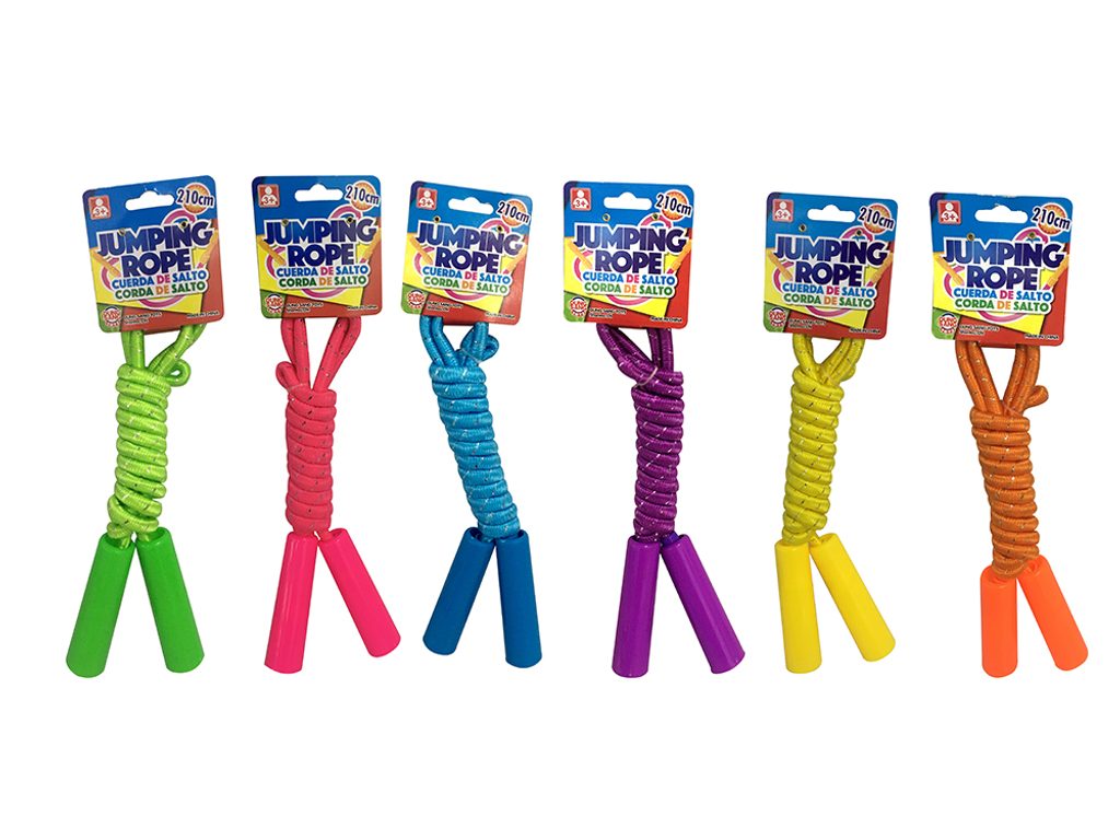 Barevné švihadlo 210 cm dlouhé.