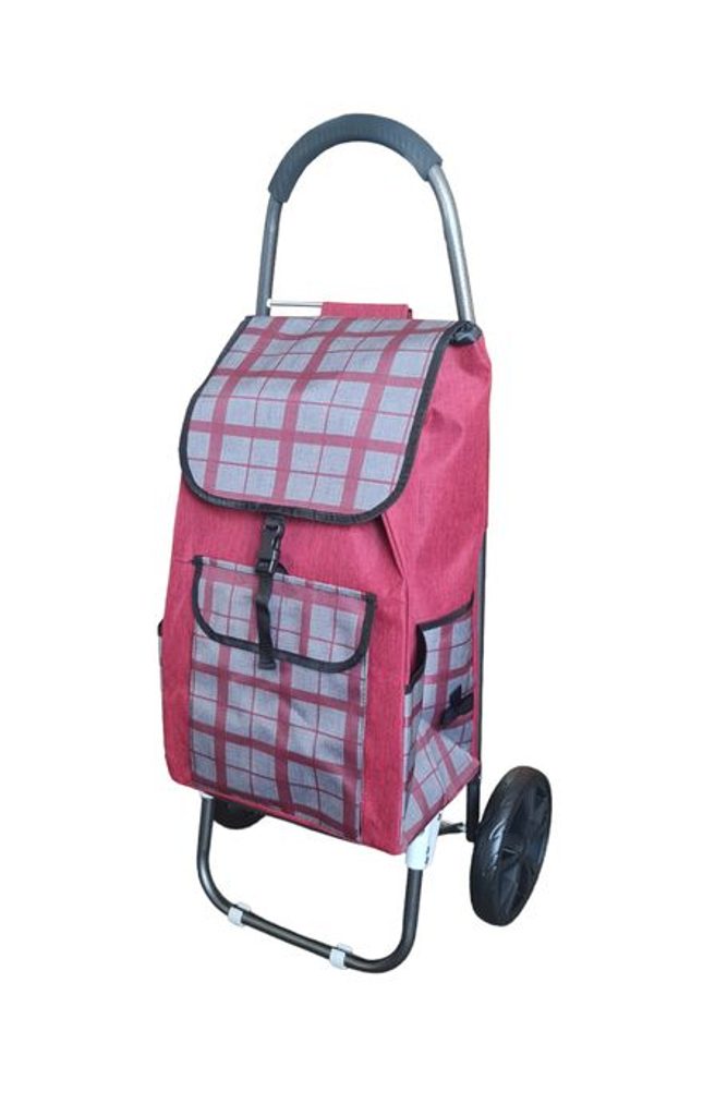 taška s kol., KÁRO červené, (24kg) přední, boční kapsy, textil