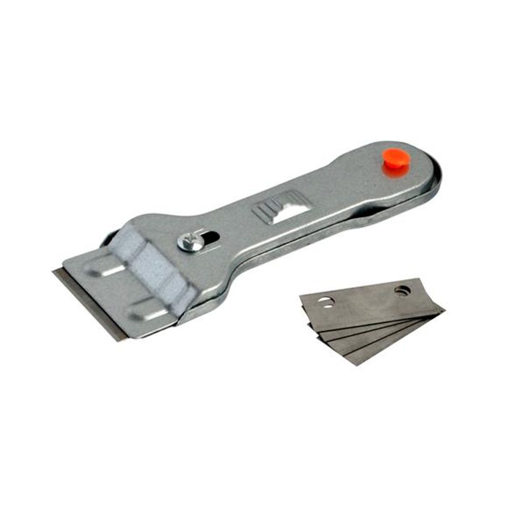 Kovová škrabka snadno očistí Vaši sklokeramickou desku od zaschlých zbytků jídel a nečistot. Balení obsahuje též 5 ks náhradních čepelí do škrabky.