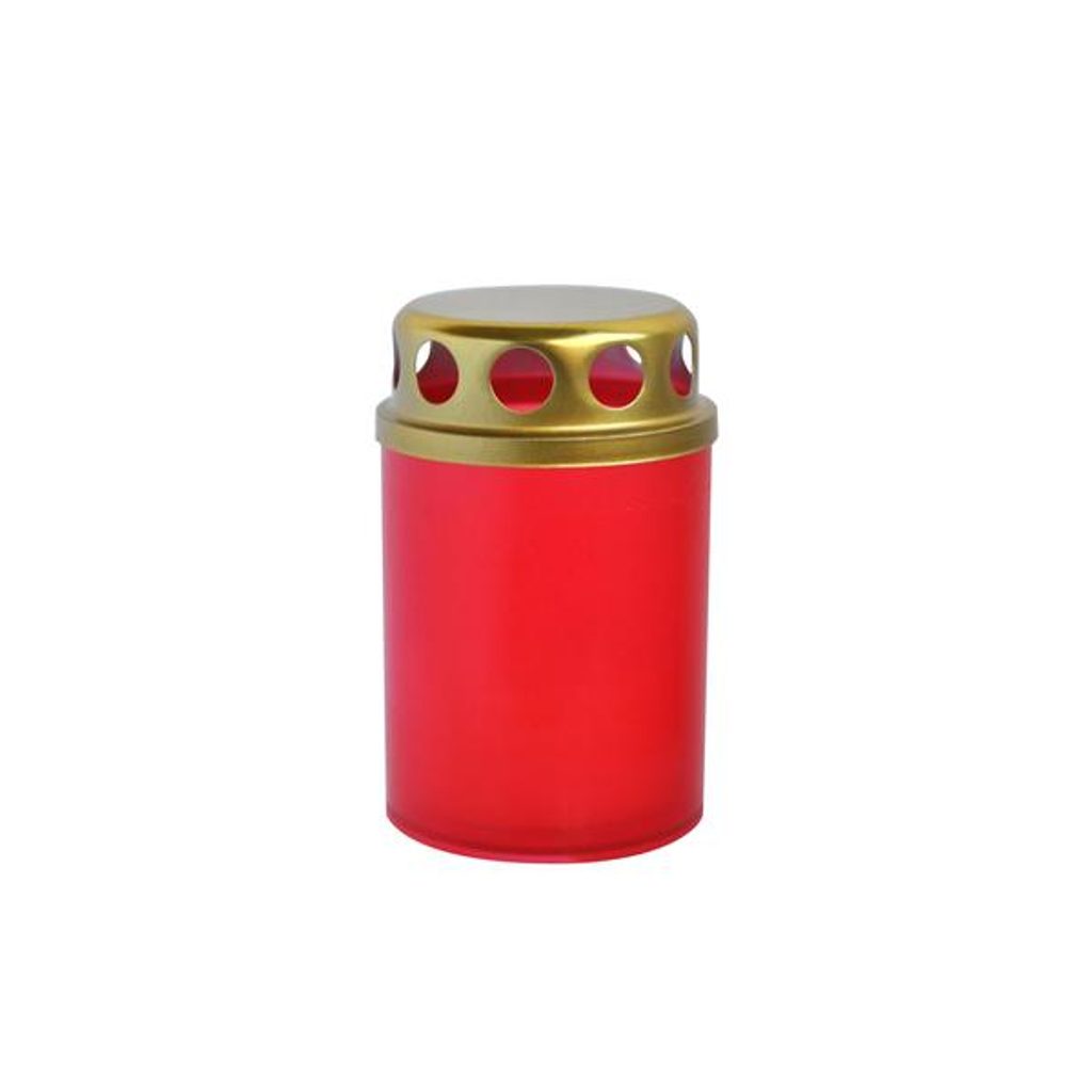 Hřbitovní svíčka 7 cm s ochranným víčkem proti větru a dešti. Doba hoření 6 hodin.