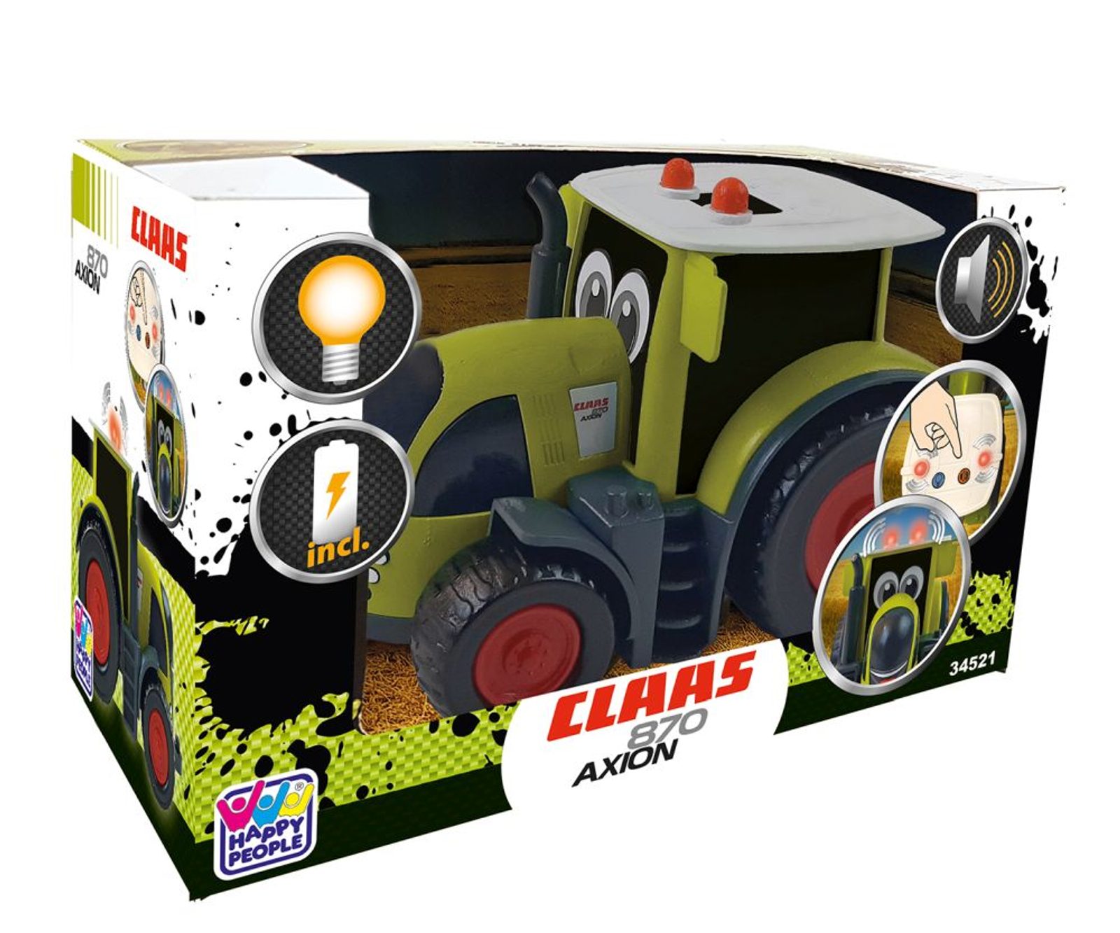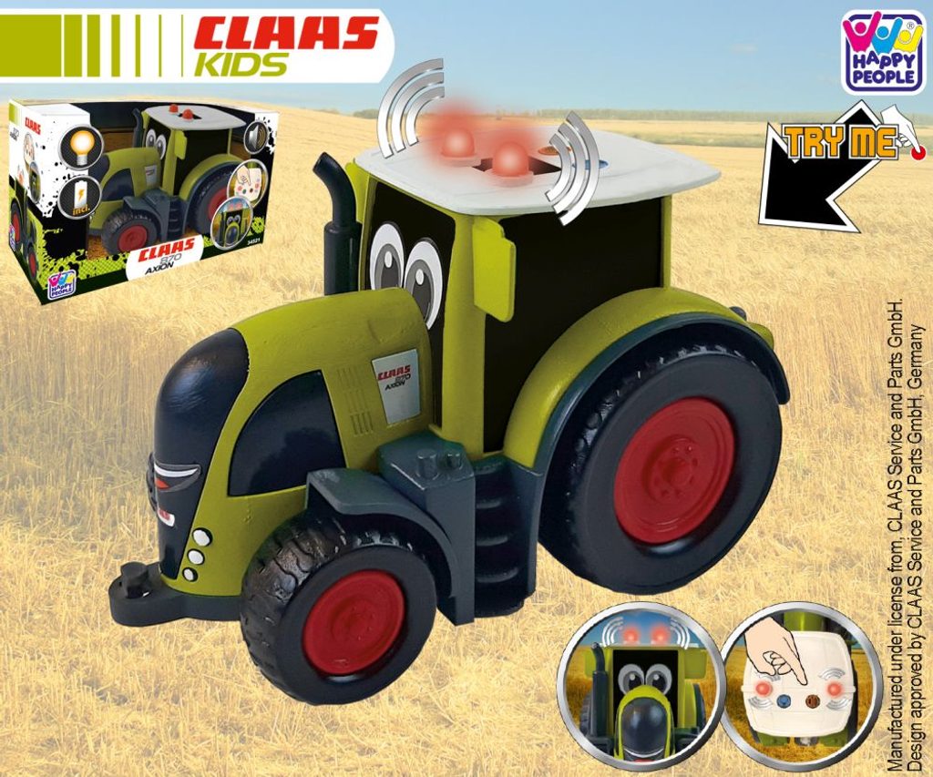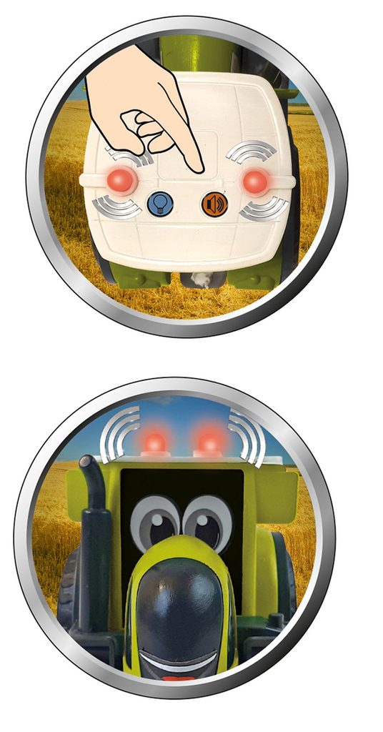 Traktor CLAAS KIDS vydává zvuk motoru a obsahuje světelnou funkci majáku.