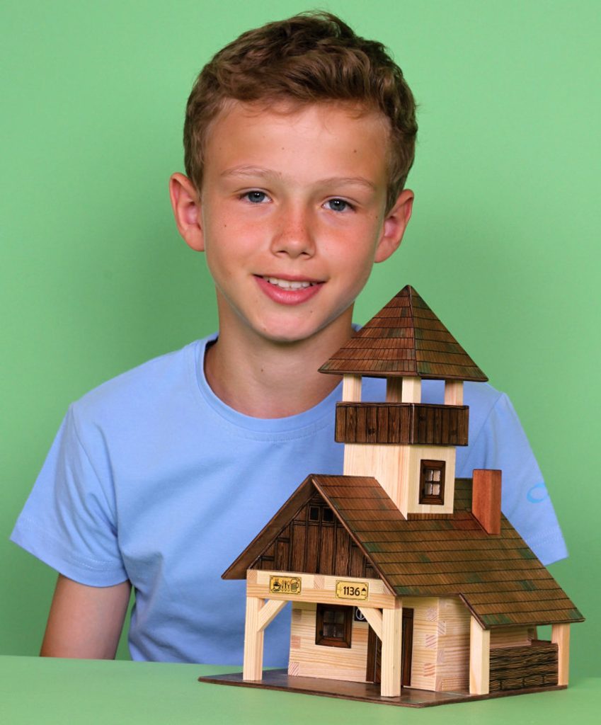 Dřevěná slepovací stasvebnice ve které je vše potřebné k sestavení včetně návodu. Ke slepení se používá lepidlo na dřevo a papír. Není součástí balení.
