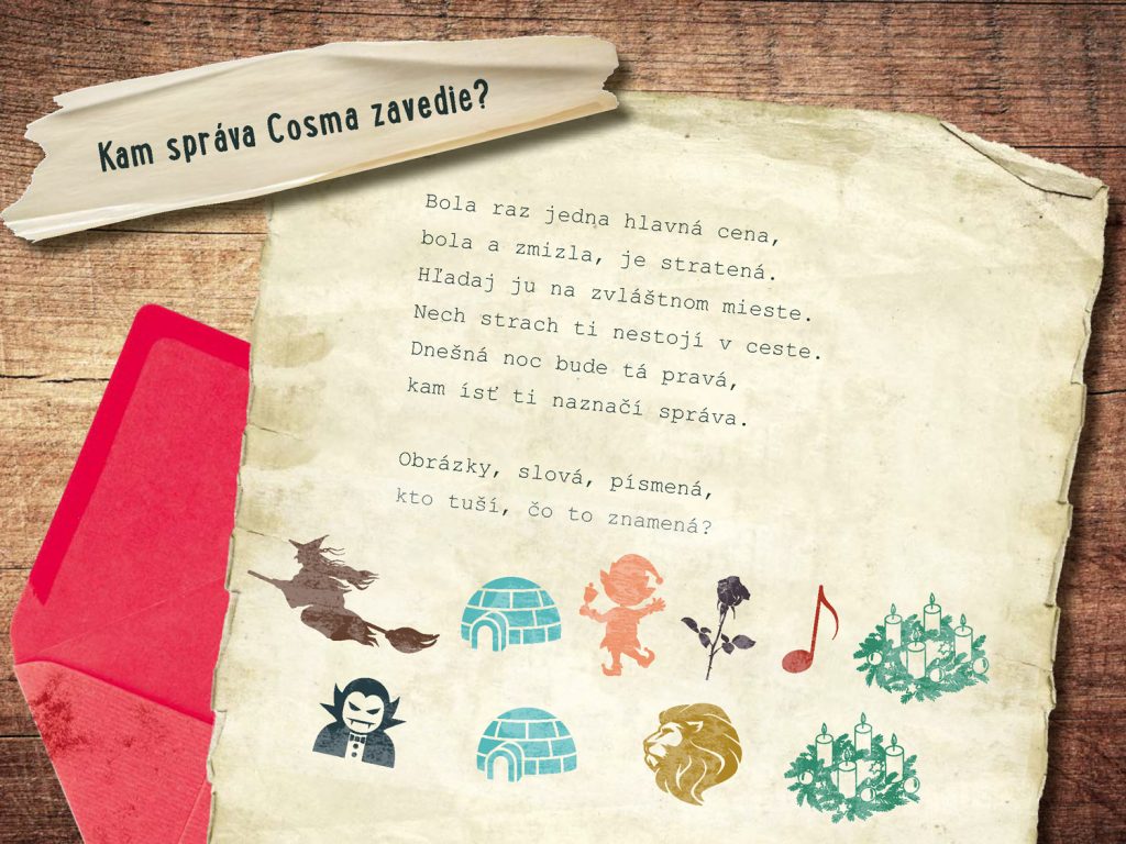 Ve škole třináctiletého Cosma se chystá vánoční tombola, jenže v noci za záhadných okolností zmizí hlavní cena – velká perníková chaloupka. Zvláštní stopa zavede Cosma a jeho kamarády do tajemné Černé vily. Rozhodnou se, že rozluští tajemství tohoto strašidelného sídla. Máte dost odvahy a důvtipu? Pomůžete jim? Jen když postupně vyluštíte všech 24 zapeklitých hádanek, dokážete přijít na kloub záhadě domu i zmizení perníkové chaloupky, a zachránit tak školní vánoční slavnost!