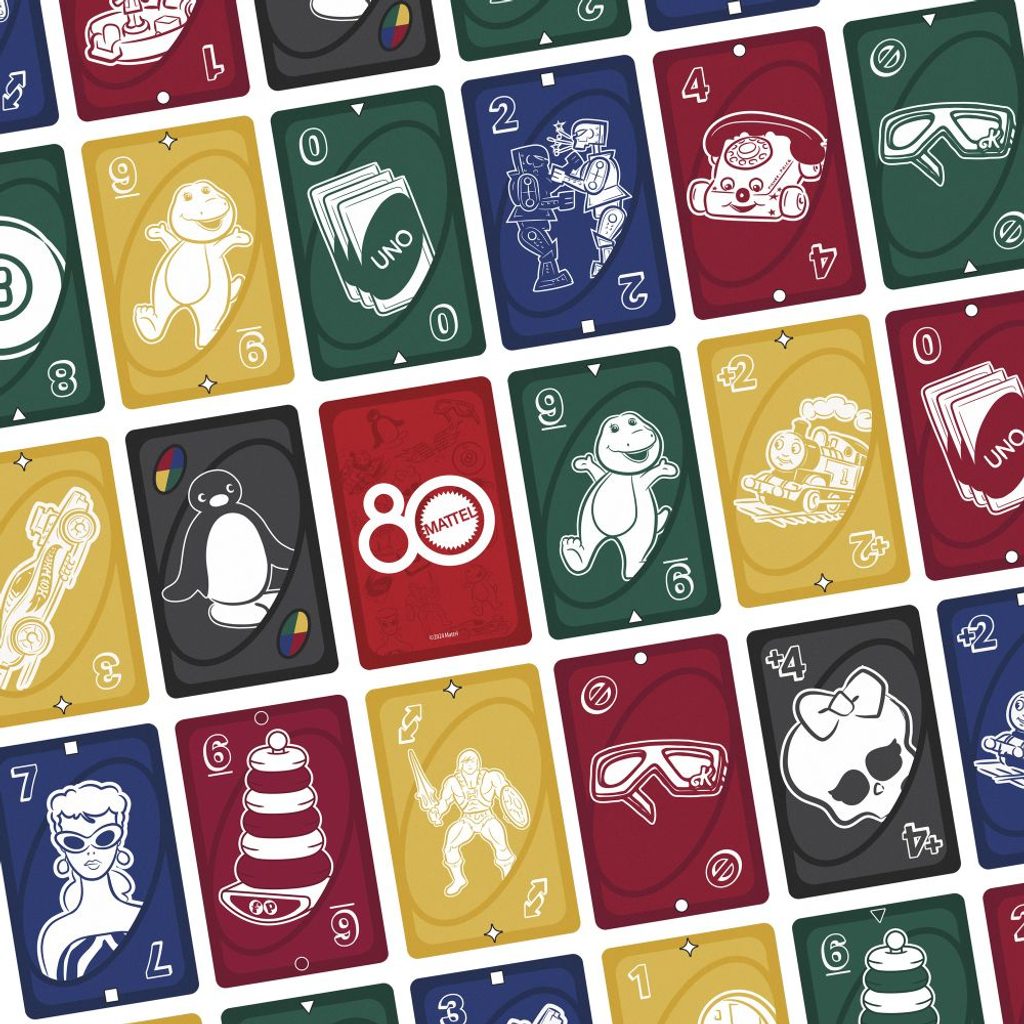 Fanoušci skvělých hraček a her, které společnost Mattel během let vytvořila, si zamilují hru UNO k 80. výročí společnosti. Tento balíček obsahuje grafiku inspirovanou hračkami Mattel, přičemž hráči se snaží spojit barvy a čísla, stejně jako v klasické hře. A když vám zůstane poslední karta, nezapomeňte křičet "UNO!" Skvělý dárek pro fanoušky hraček a her Mattel i milovníky karetních her od 7 let. Barvy a vzhled karet se mohou lišit.