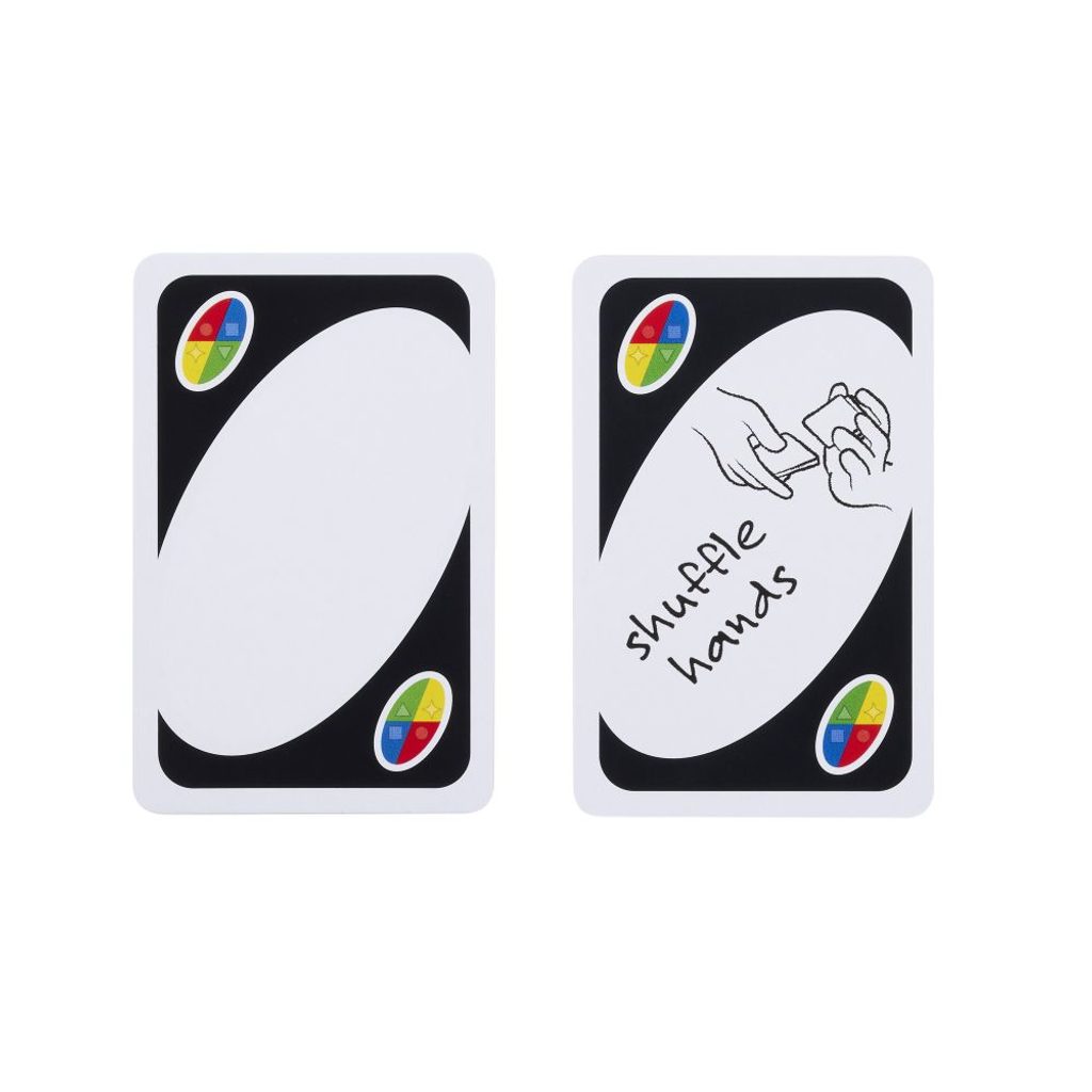 Hra UNO™ karty je klasická jednoduchá karetní hra s přiřazováním karet stejných barev a čísel, a která nyní přichází s novinkou – v balíčku najdeš 3 akční přepisovatelné divoké karty, díky kterým můžeš vytvářet svá vlastní pravidla! V balíčku najdeš celkem 19 karet od každé ze čtyř barev (červená, zelená, modrá a žlutá) a speciální karty: 8x Vezmi si dvě karty, 4x Změna směru (v každé barvě), 4x Přeskoč karty (v každé barvě) a společně s nimi také 4x Divoká karta, 4x Vezmi si 4 karty, 1x Vyměň si karty a 3x karty Přepiš to. Nezapomeň zakřičet „UNO“, když už máš v ruce jenom jednu kartu. Hra obsahuje 112 karet.