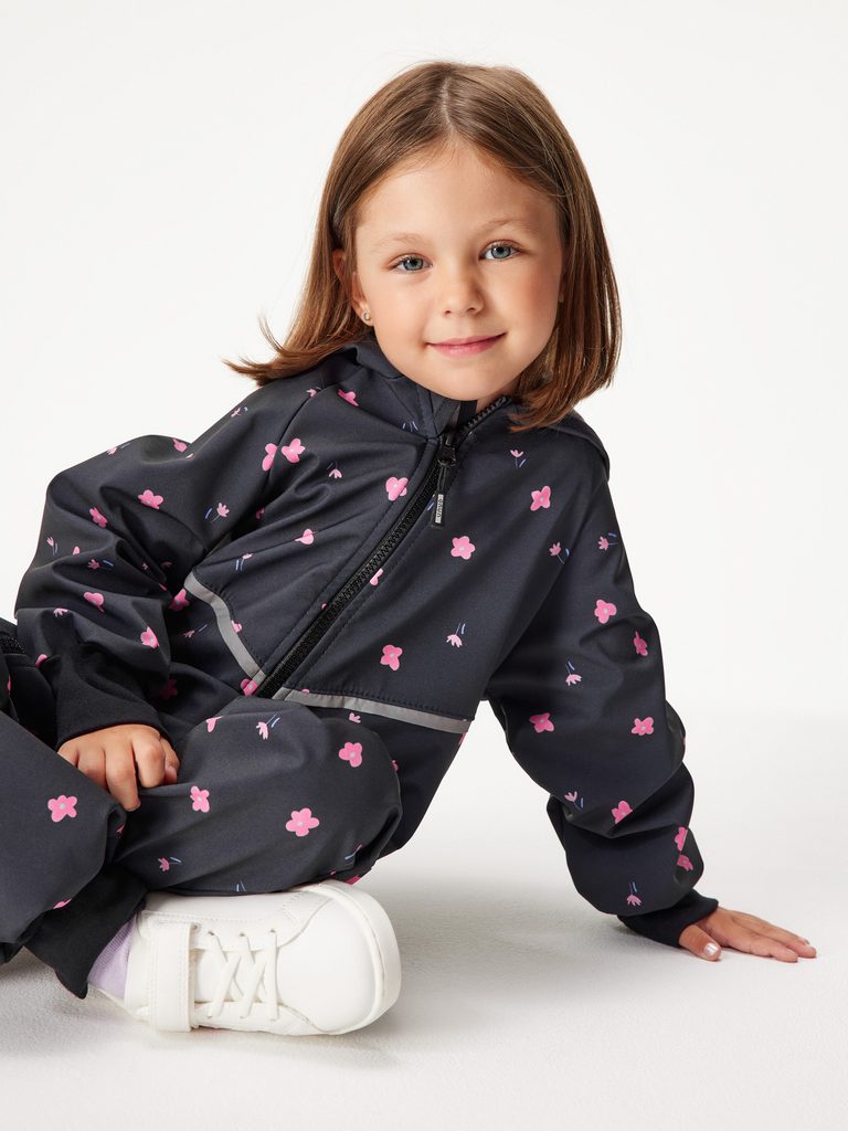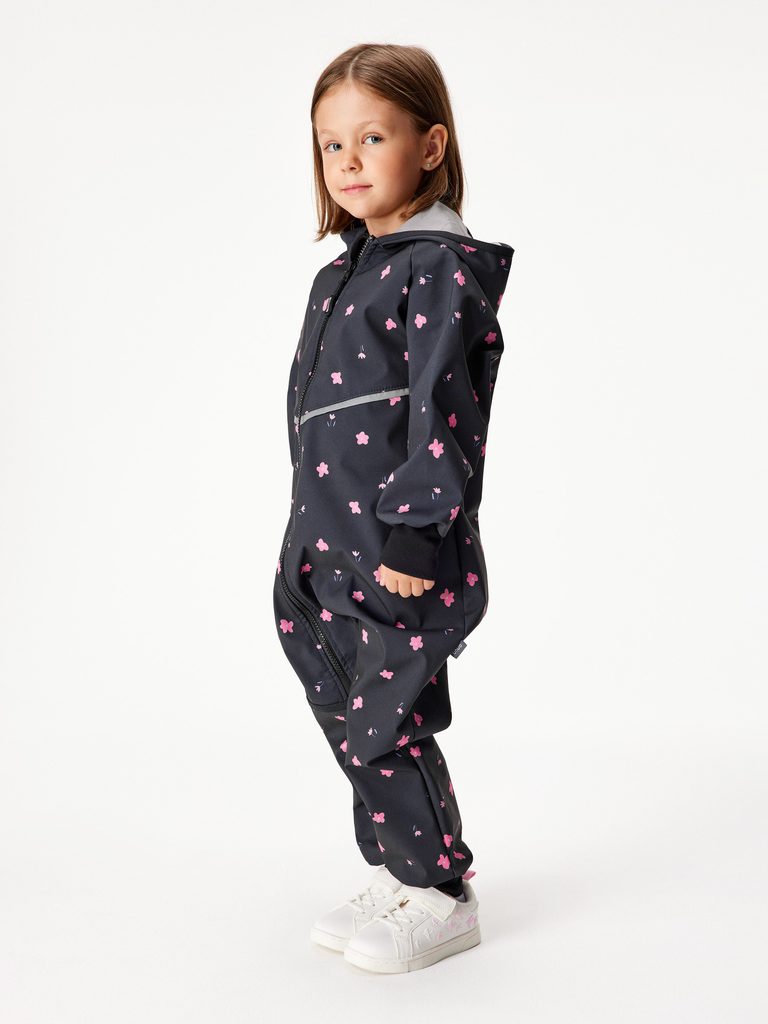 Unuo, Batolecí softshellová kombinéza s fleecem Mini, Černá, Květiny