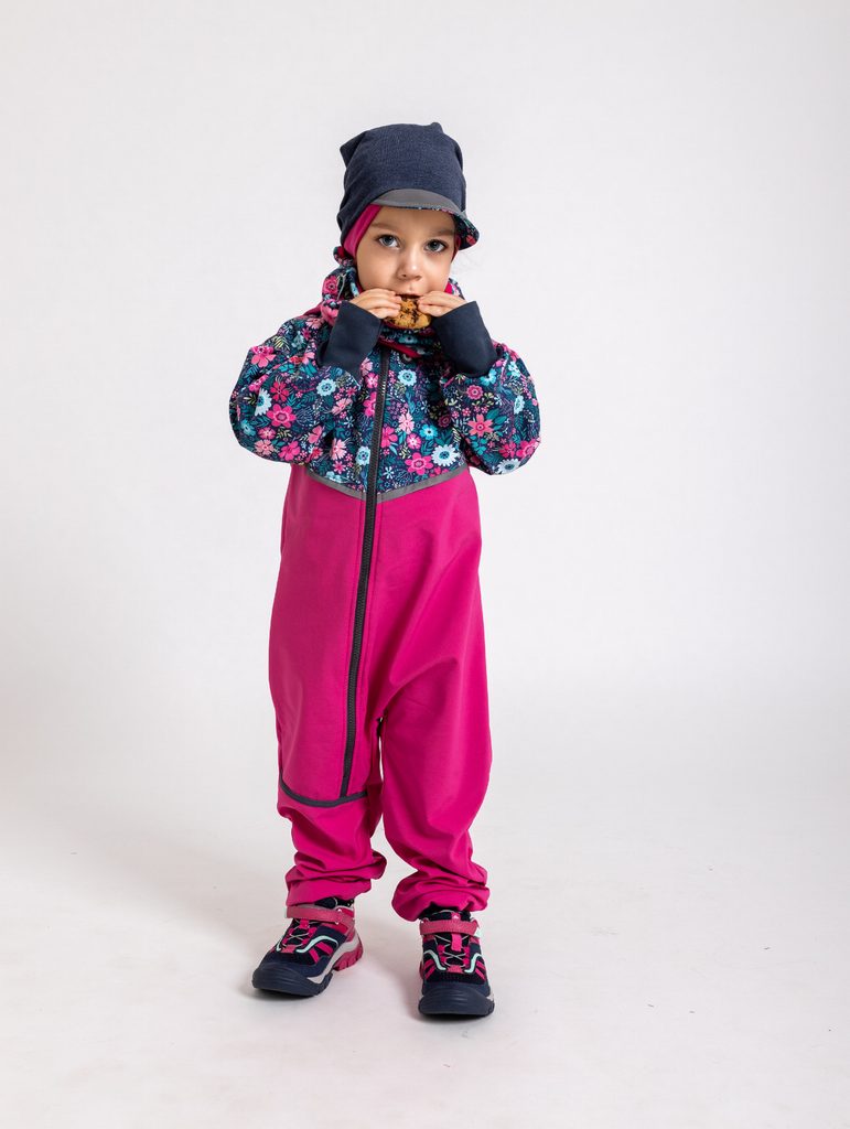 Unuo, Batolecí softshellová kombinéza s fleecem Mini, Fuchsiová, Květinky