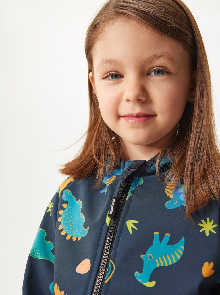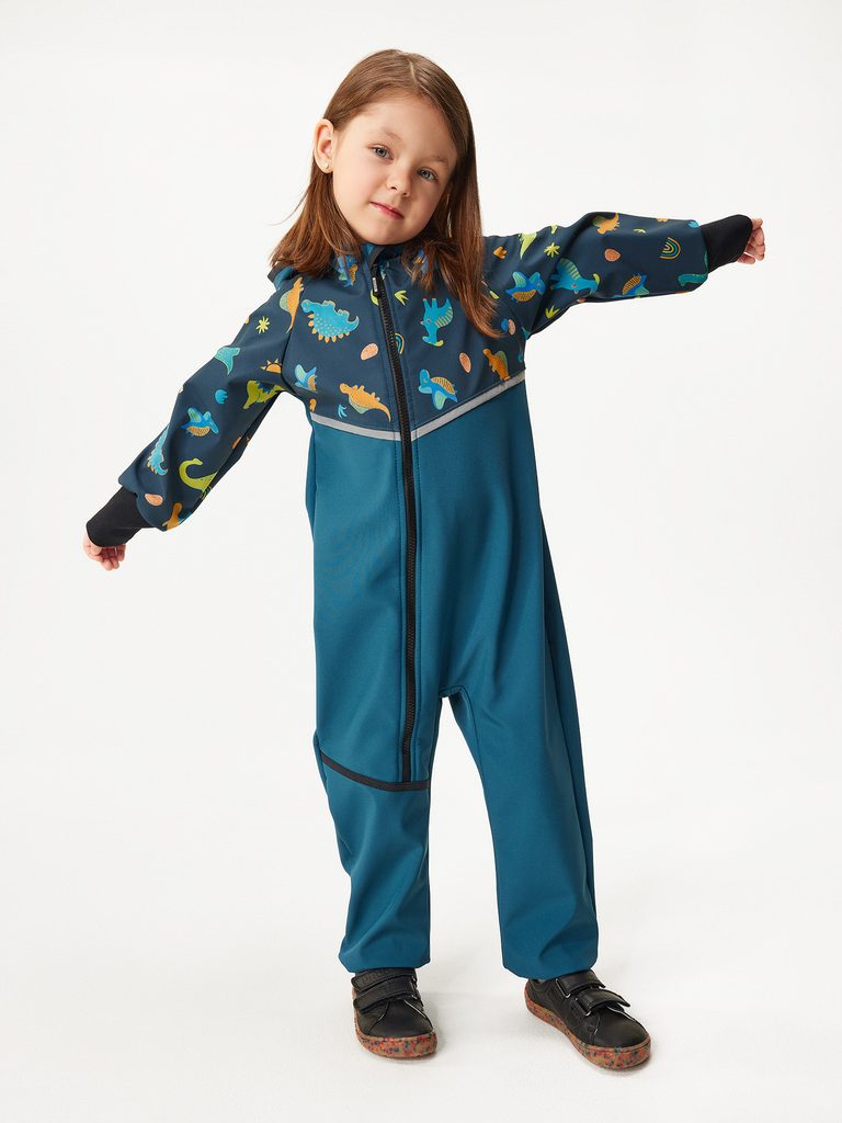 Unuo Batolecí softshellová kombinéza s fleecem Mini, Kobaltová, Dinosauři