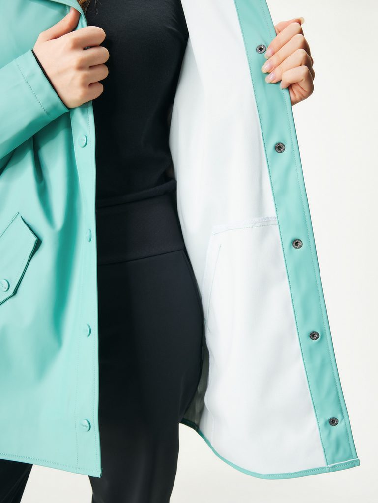 Stylový a funkční dámský nepromokavý kabát vás ochrání před deštěm i větrem v každém počasí. Odolný materiál se zatavenými švy spolehlivě nepropustí ani kapku vody, zatímco praktická kapuce s kšiltem chrání obličej před deštěm. Rukávy lze snadno upravit pomocí patentky, aby lépe seděly a nepropouštěly vlhkost. Kabát se zapíná na patentky s logem unuo, které usnadňují oblékání a dodávají mu jedinečný vzhled. Nechybí ani praktické kapsy, kam si bezpečně uložíte drobnosti. Perfektní volba pro ženy, které hledají lehkou, ale spolehlivou ochranu do deštivých dnů. Nepromokavá kolekce je navržena v České republice a ušita zahraniční šití dílnou.