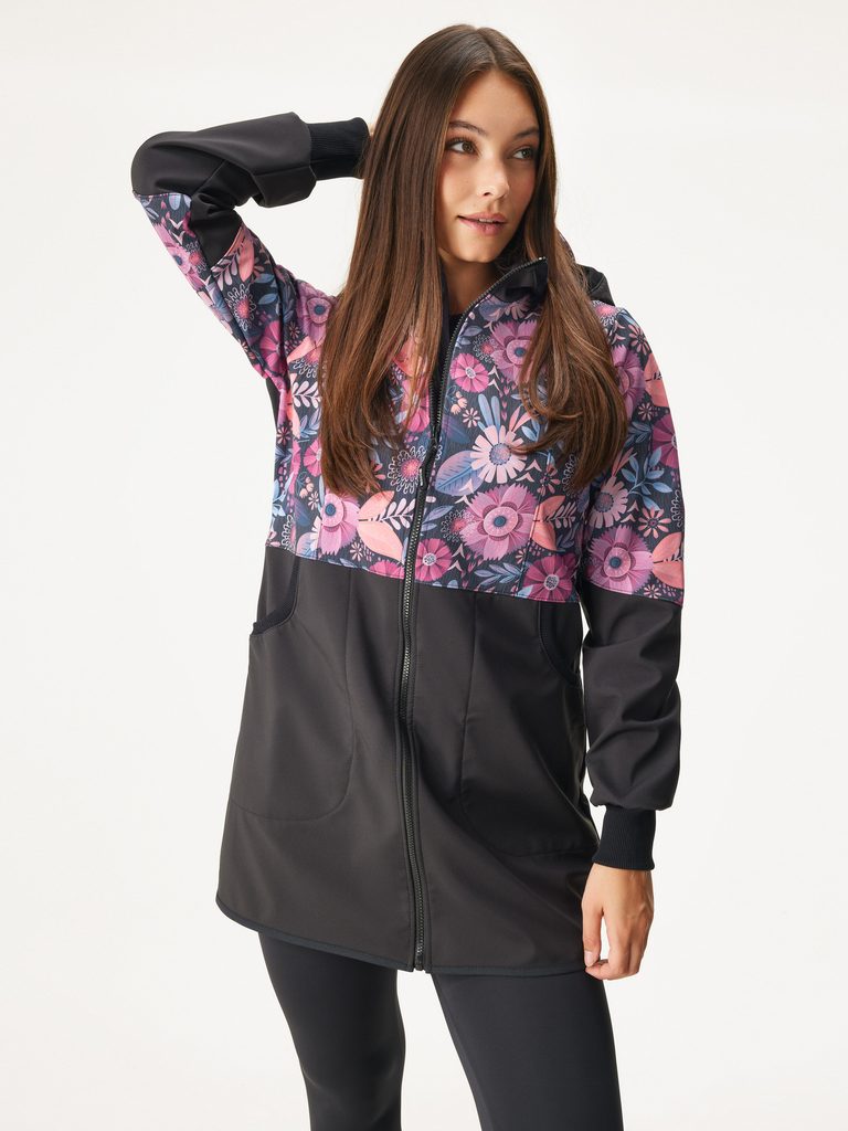 Unuo, Dámský softshellový kabát s fleecem Street, Černá, Kouzelné květiny