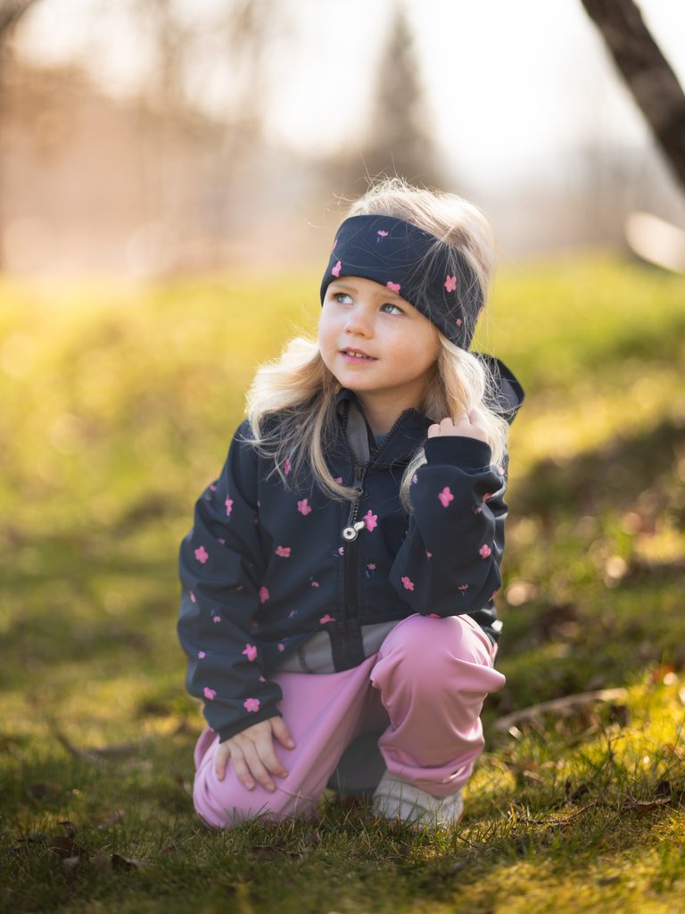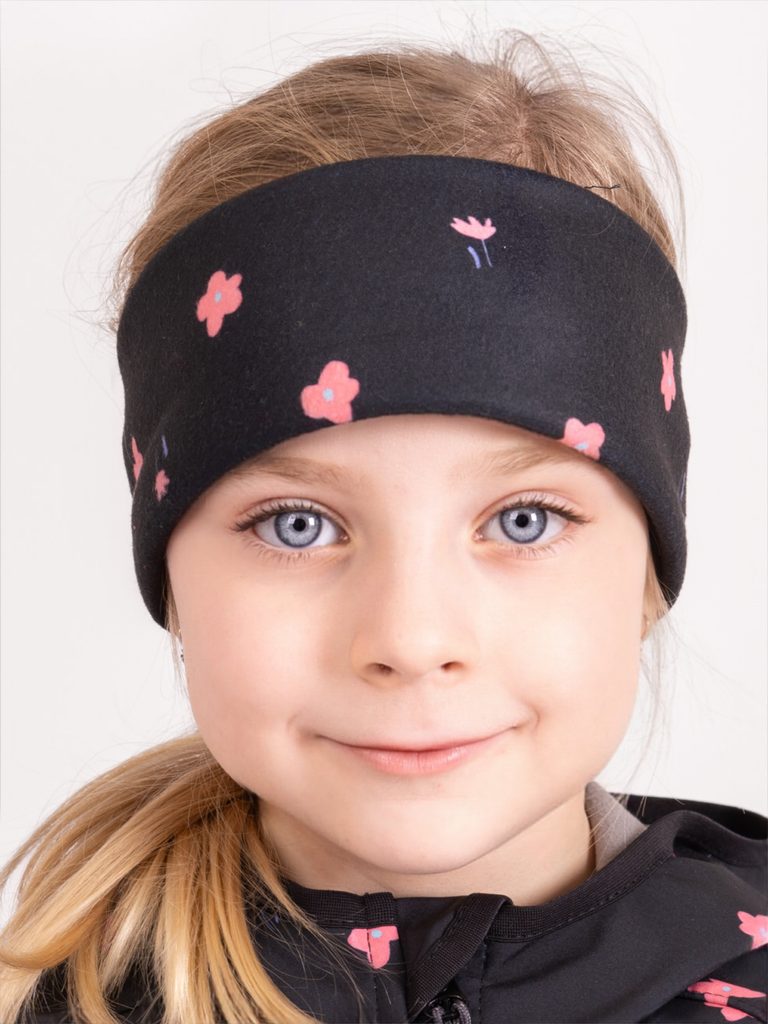 Unuo, Dětská čelenka fleecová Elise, Černá, Květiny