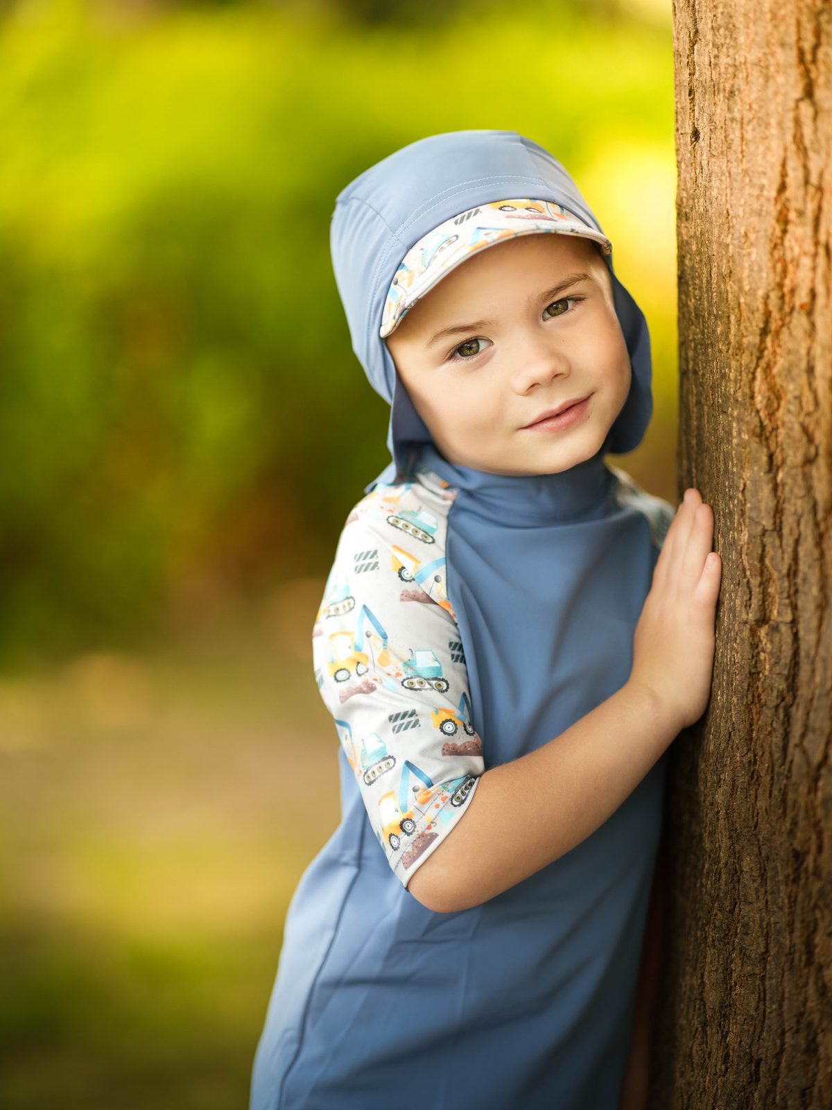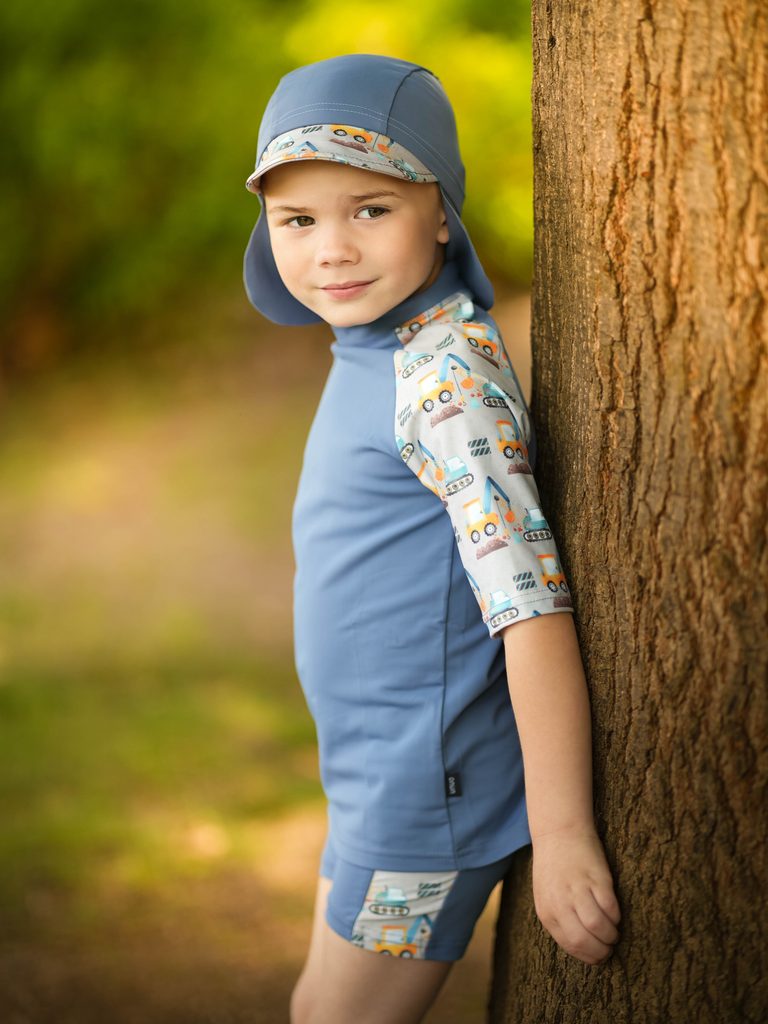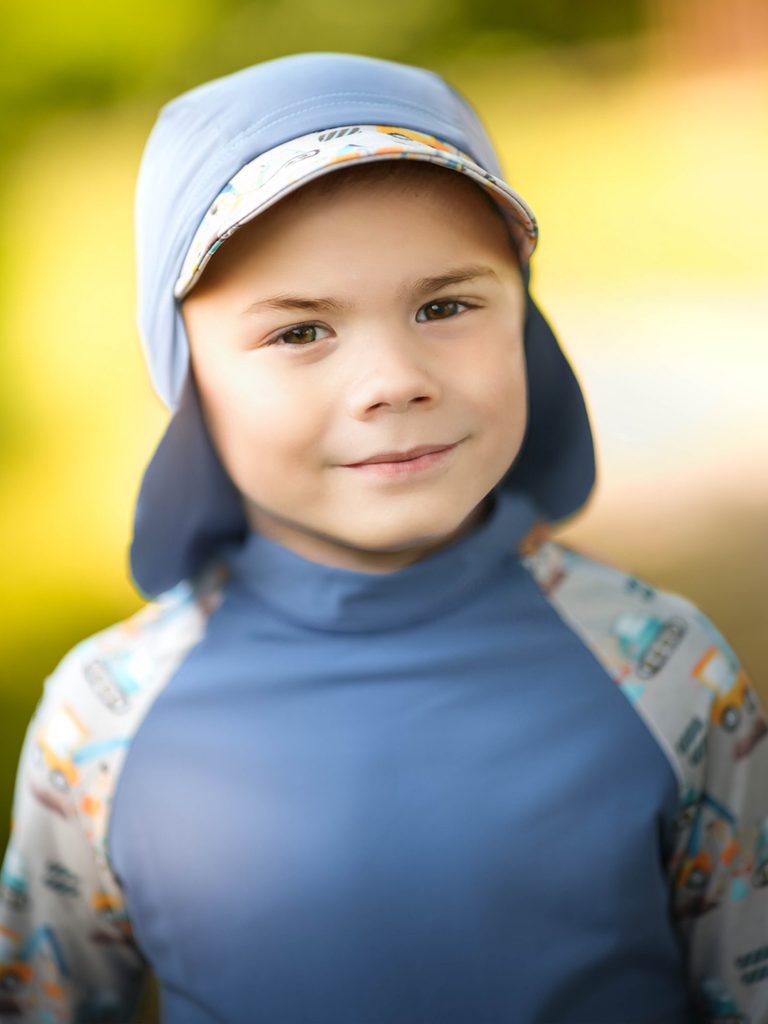 Unuo, Dětská kšiltovka s plachetkou a UV ochranou 50+, Modrá, Bagry