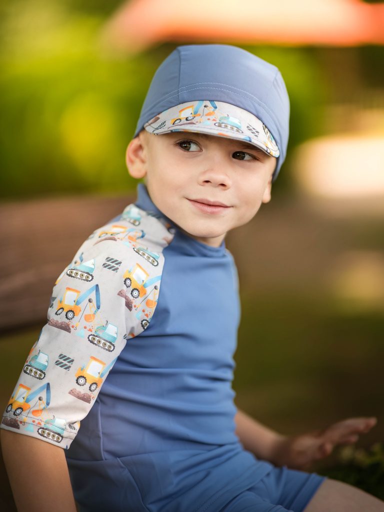Unuo, Dětská kšiltovka s UV ochranou 50+, Modrá, Bagry