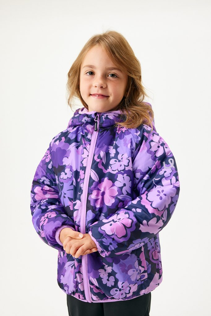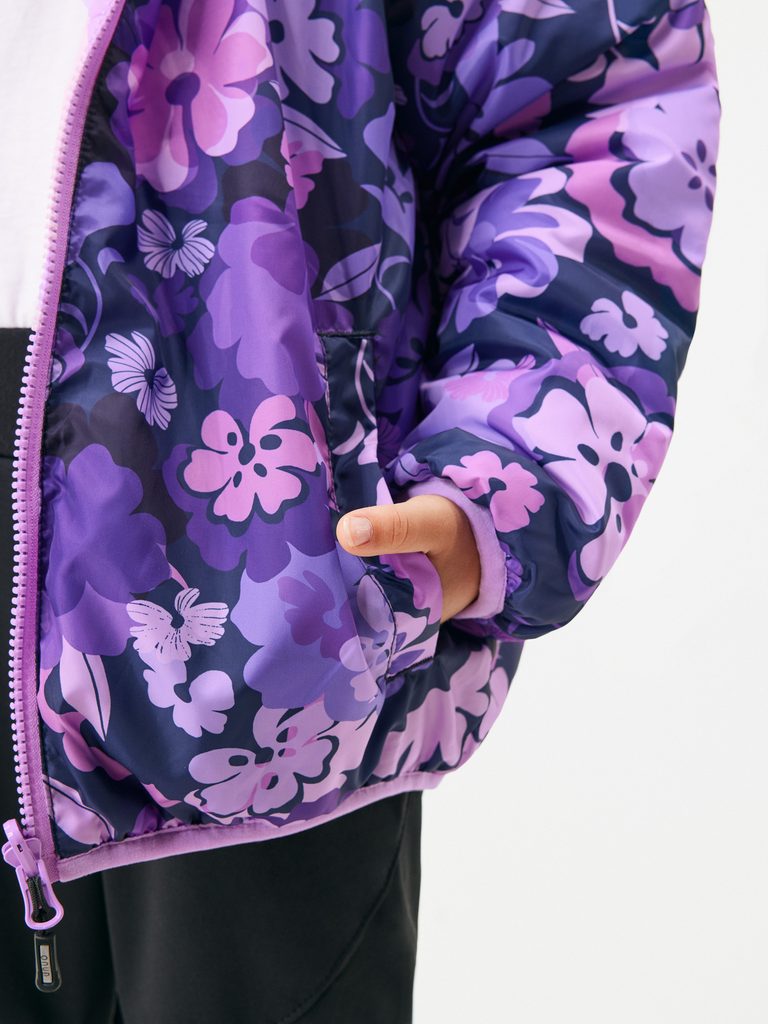 Unuo Dětská oboustranná bunda Duo, Lila, Kytky
