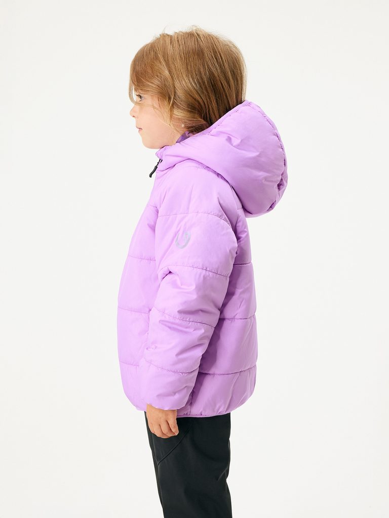 Oboustranná bunda s kapsami na suchý zip, reflexními prvky a pružnými gumičkami v pase, rukávech i kapuci. Jednobarevná nebo se vzorem? Každý den jinak!