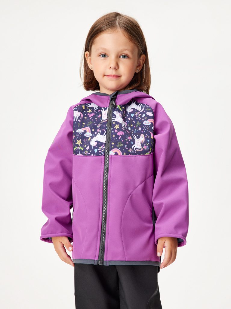 Unuo Dětská softshellová bunda bez zateplení Basic, Ostružinová, Jednorožci
