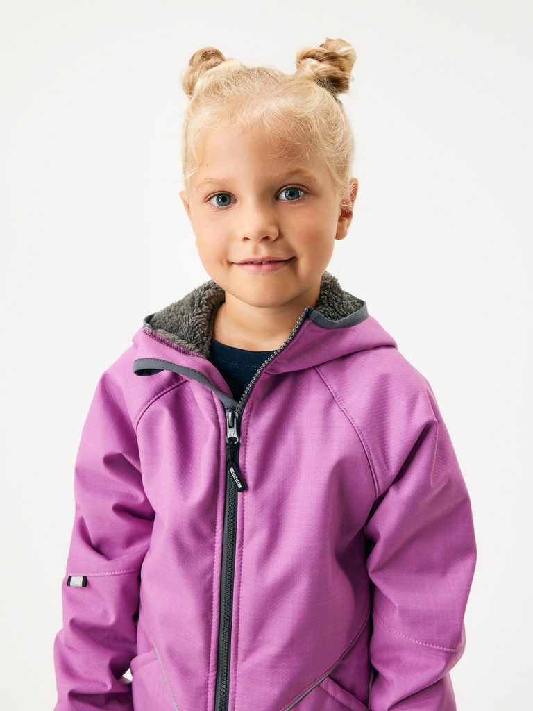 Unuo, Dětská softshellová bunda s beránkem, Fialová