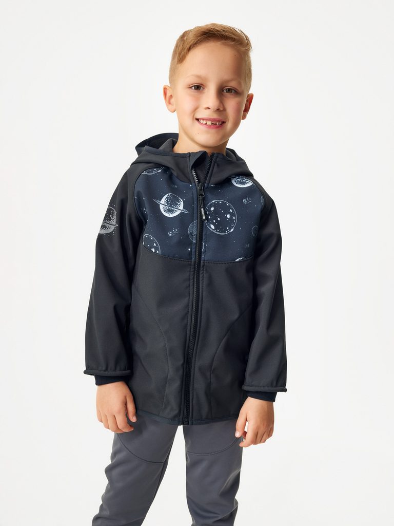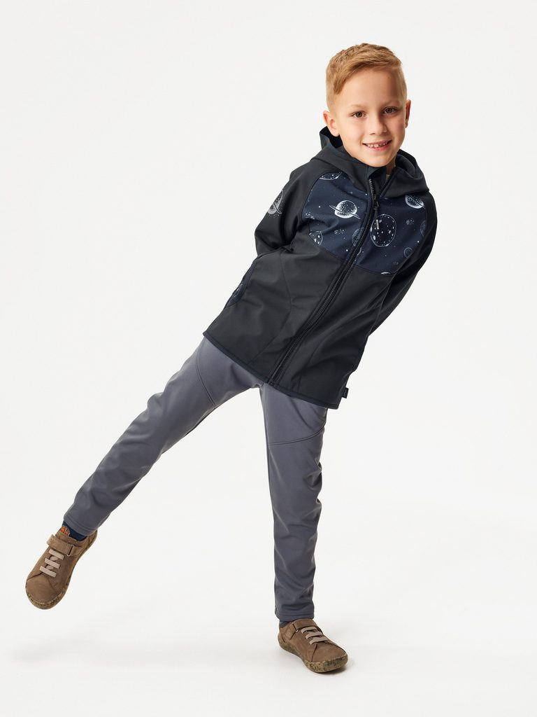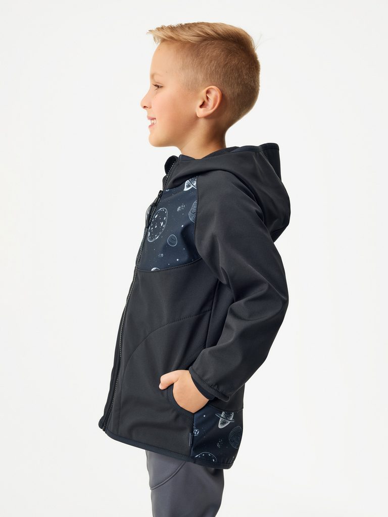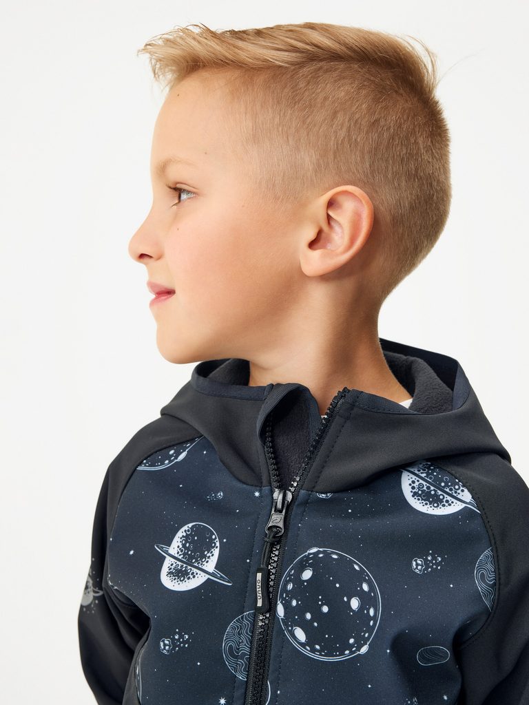 Unuo, Dětská softshellová bunda s fleecem Basic, Černá, Planety
