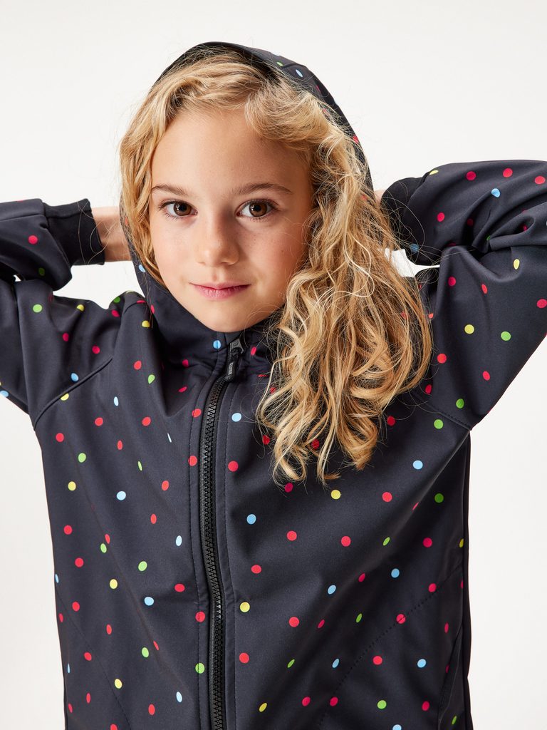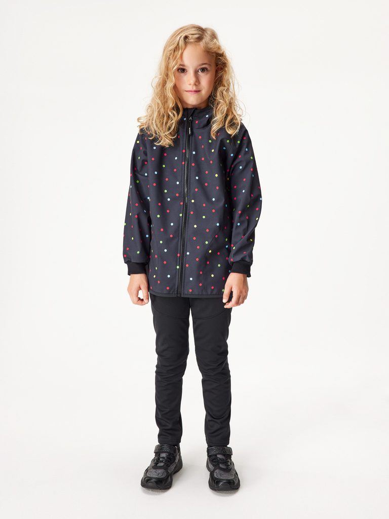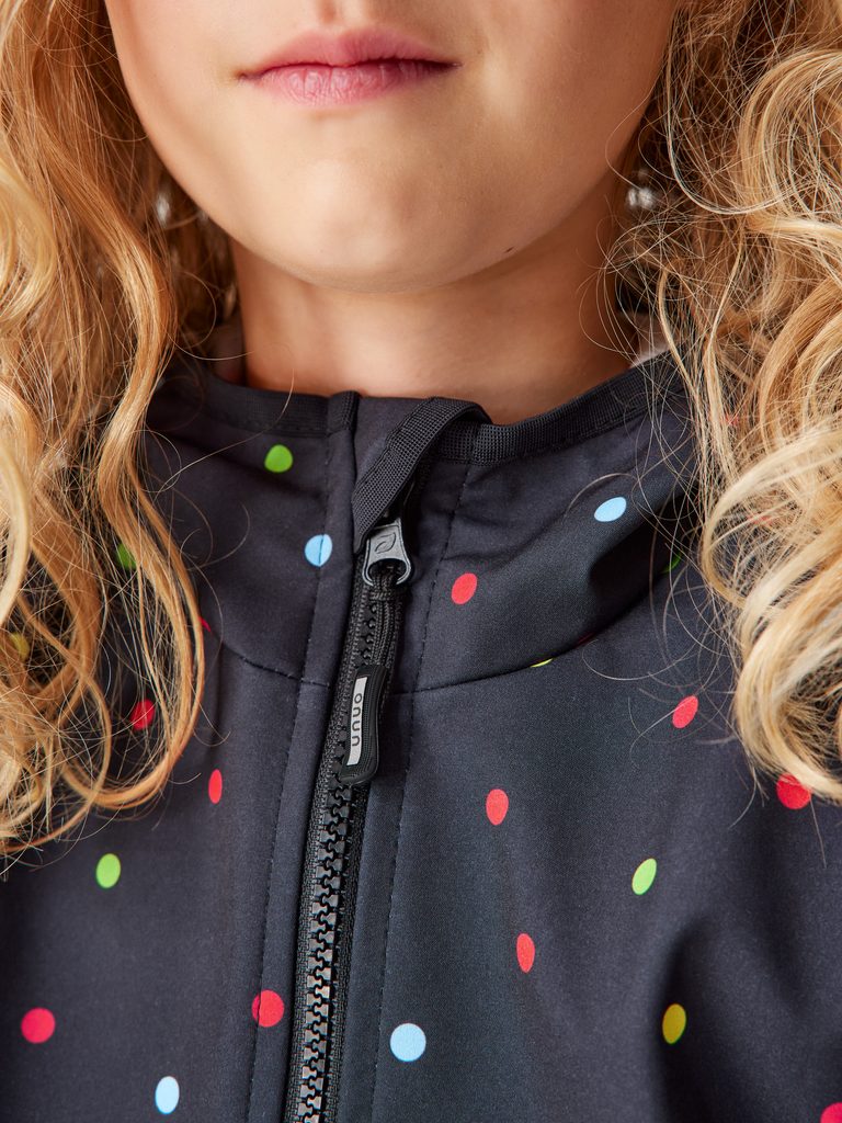 Unuo, Dětská softshellová bunda s fleecem Basic, Černá, Puntík