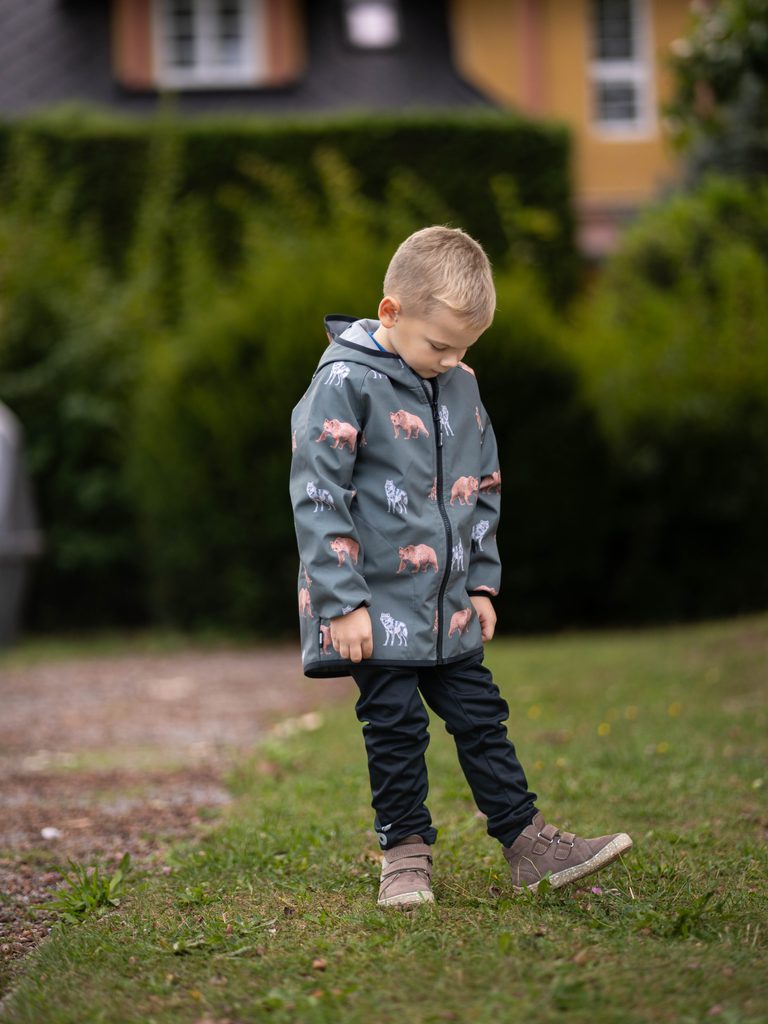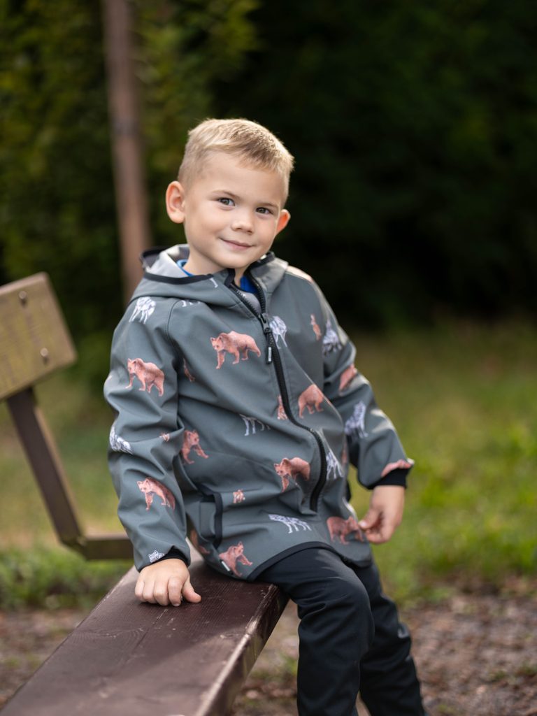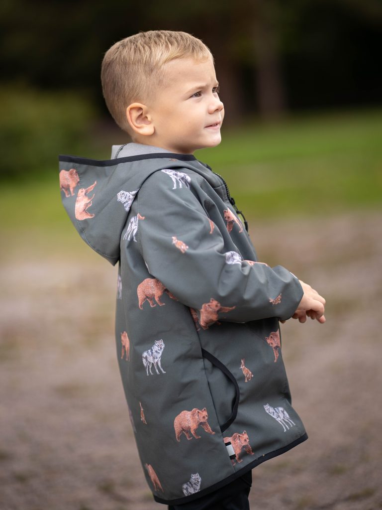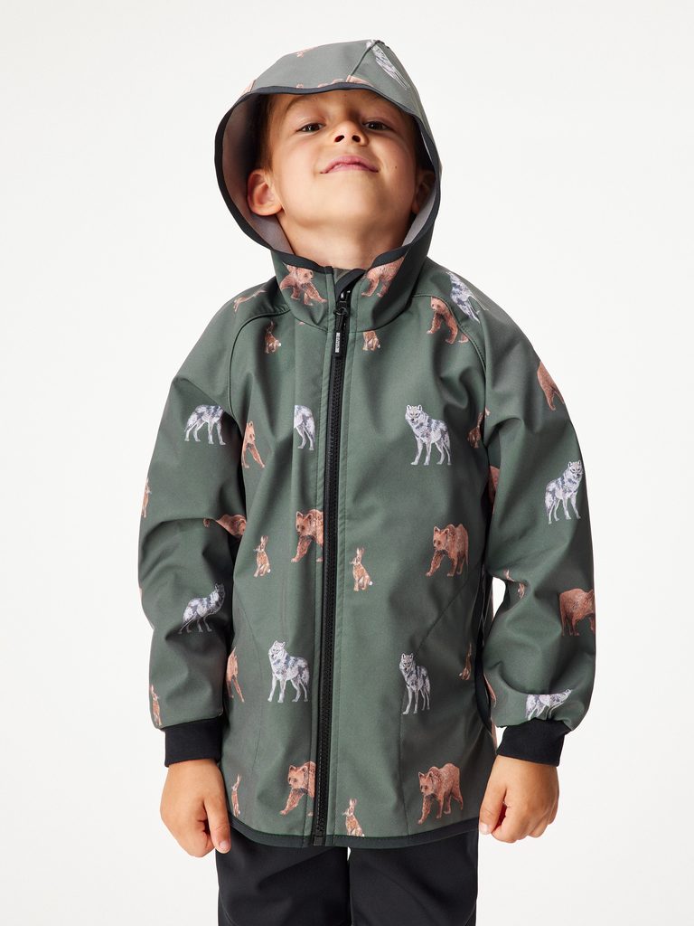 Unuo, Dětská softshellová bunda s fleecem Basic, Khaki, Lesní zvířata
