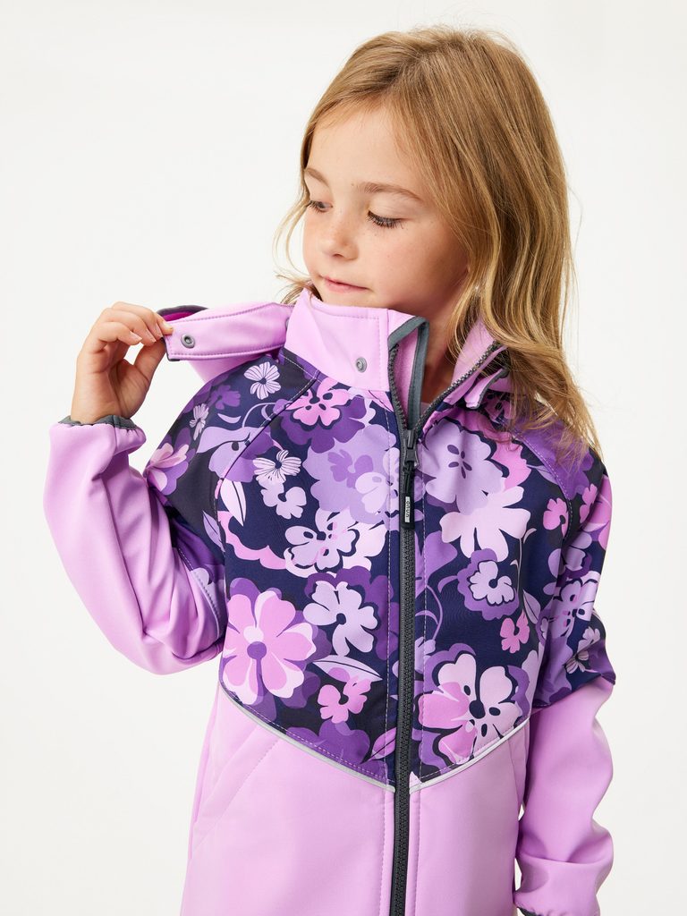 Unuo Dětská softshellová bunda s fleecem Slim, Lila, Kytky
