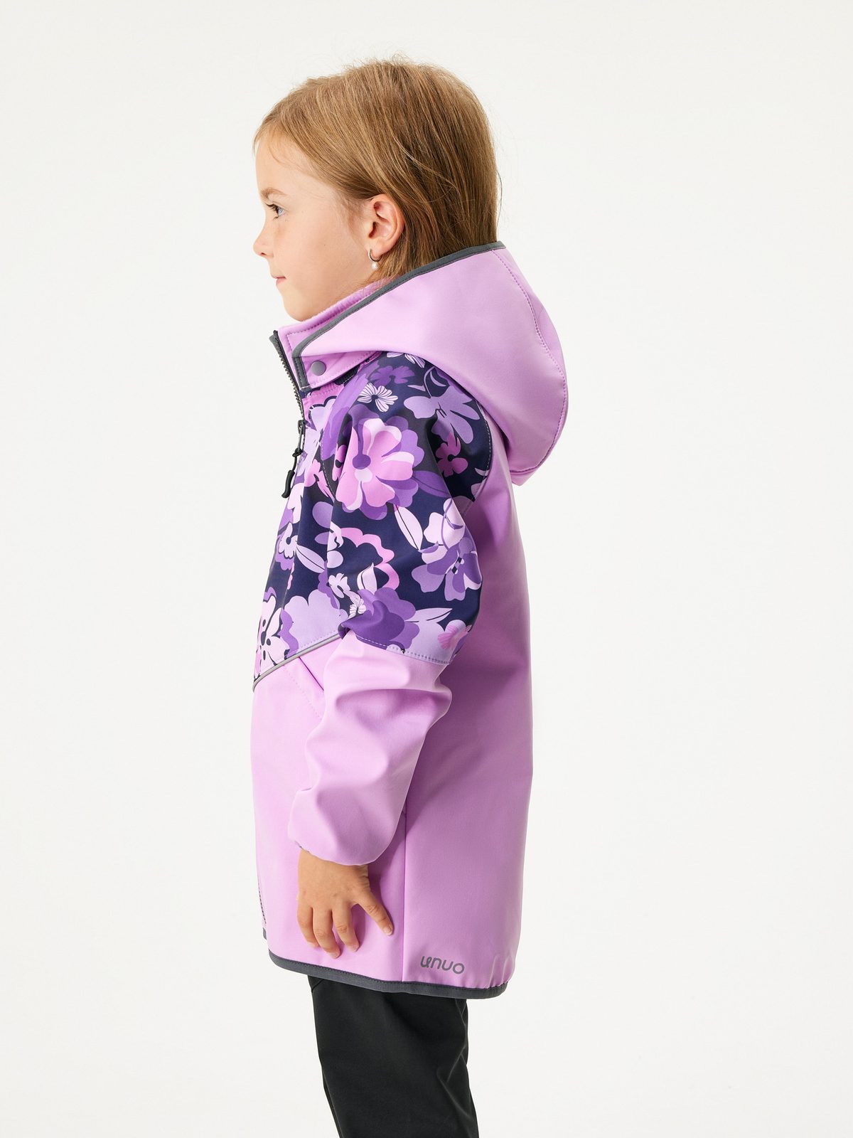 Unuo Dětská softshellová bunda s fleecem Slim, Lila, Kytky