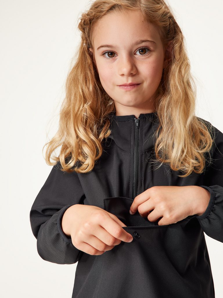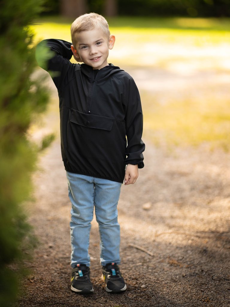 Ideální bunda pro každé letní dobrodružství na výletech nebo venkovních hrách. Obléká se přes hlavu a díky praktické kapse se dá jednoduše složit a sbalit, což znamená, že se bez problémů vejde i do malého batůžku. Ať už vaše děti míří na rodinný výlet, hrají si na zahradě nebo prozkoumávají lesy s kamarády, tahle větrovka je perfektní společník. Střih je velmi univerzální a je navržen tak, aby byl vhodný jak na pěší výlety, tak jízdu na kole nebo jen procházku po městě. Funkční, lehký a odolný materiál ochrání vaše dítě před větrem a mírným deštěm.Větrovka je navržena a vyrobena v České republice.