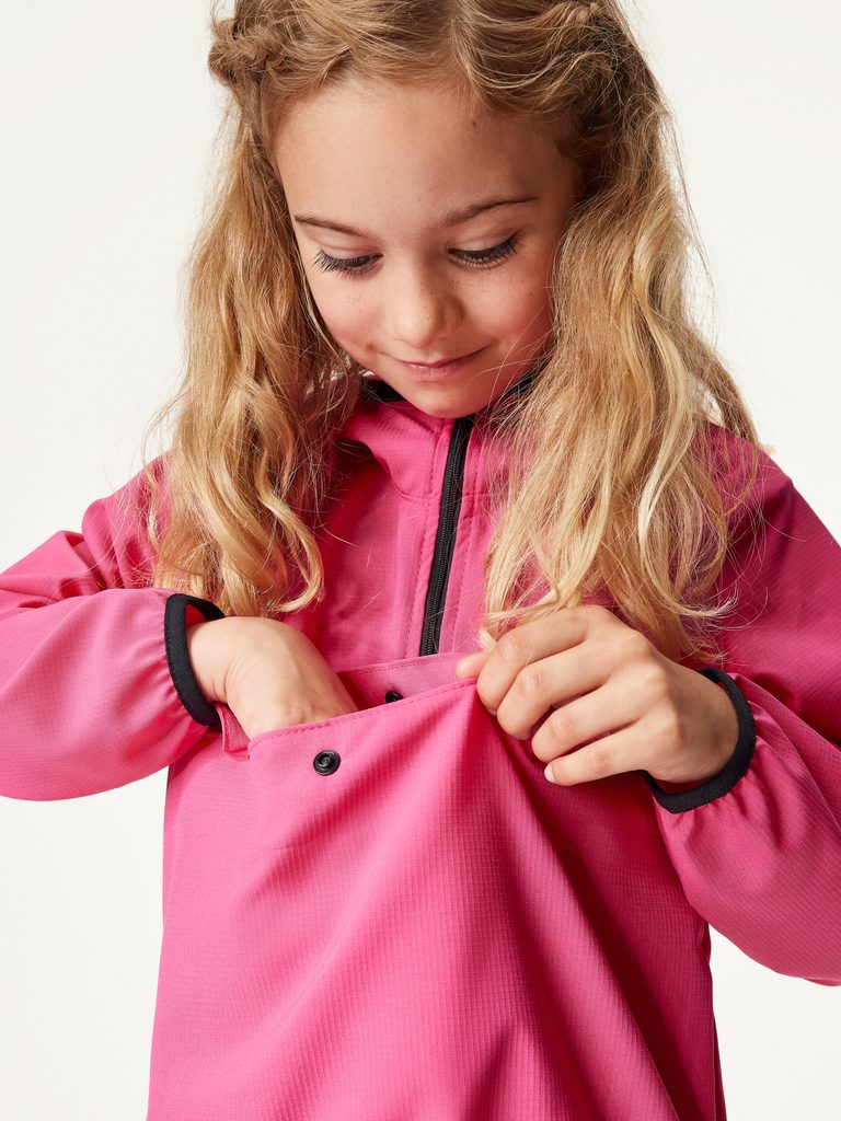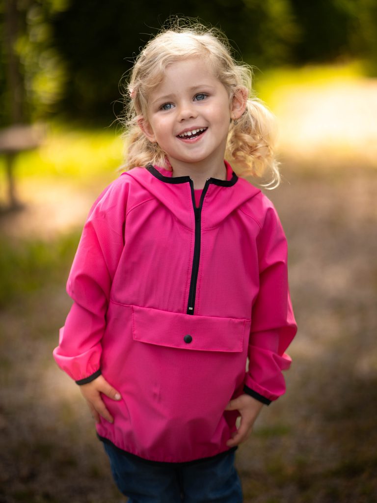 Ideální bunda pro každé letní dobrodružství na výletech nebo venkovních hrách. Obléká se přes hlavu a díky praktické kapse se dá jednoduše složit a sbalit, což znamená, že se bez problémů vejde i do malého batůžku. Ať už vaše děti míří na rodinný výlet, hrají si na zahradě nebo prozkoumávají lesy s kamarády, tahle větrovka je perfektní společník. Střih je velmi univerzální a je navržen tak, aby byl vhodný jak na pěší výlety, tak jízdu na kole nebo jen procházku po městě. Funkční, lehký a odolný materiál ochrání vaše dítě před větrem a mírným deštěm.Větrovka je navržena a vyrobena v České republice.