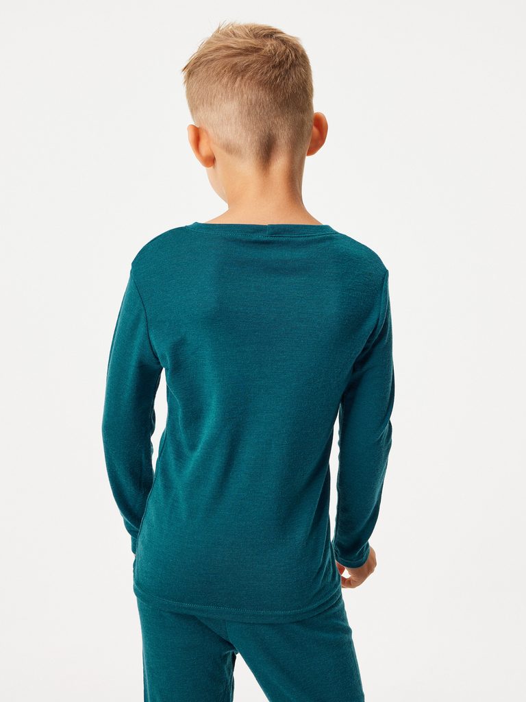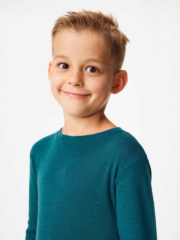 Unuo Dětské merino triko s dlouhým rukávem, Petrolejová