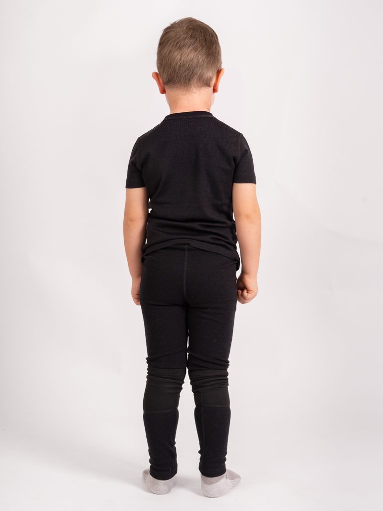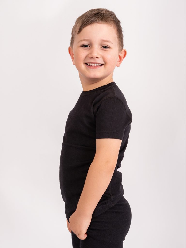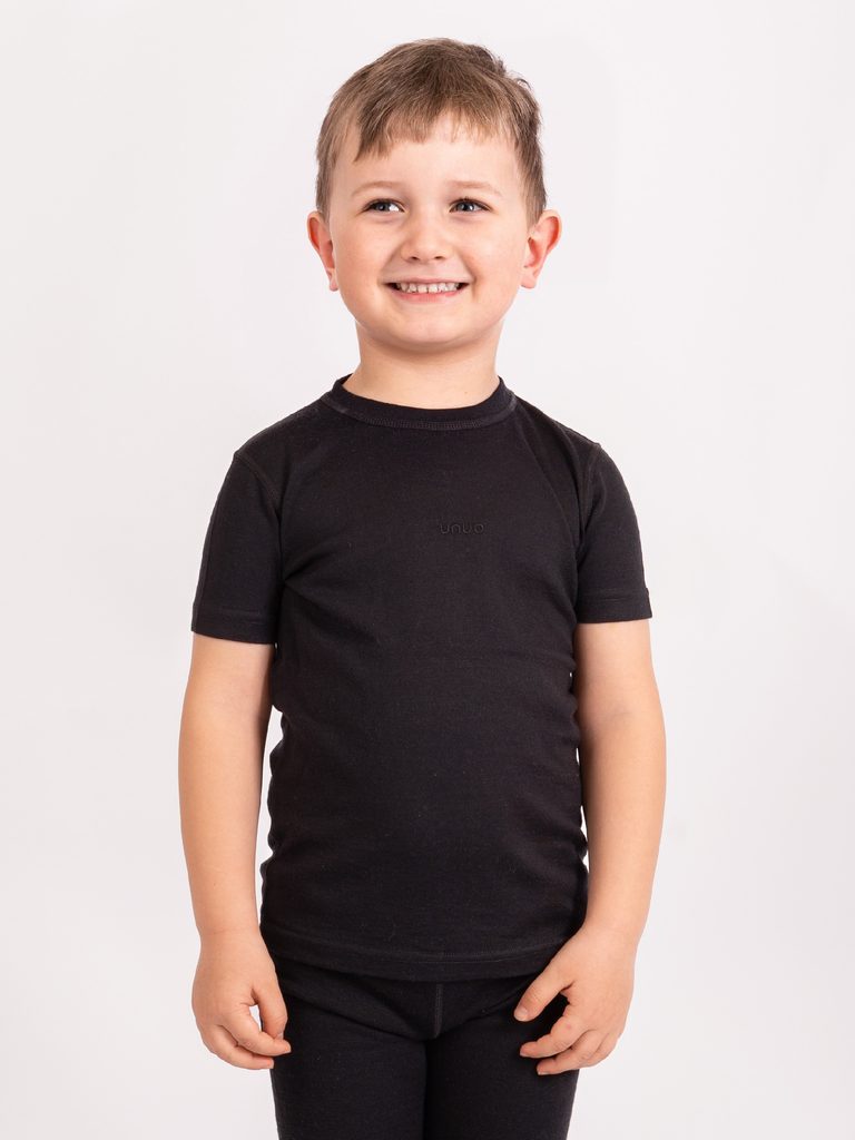 Unuo, Dětské merino triko s krátkým rukávem Nature, Černá