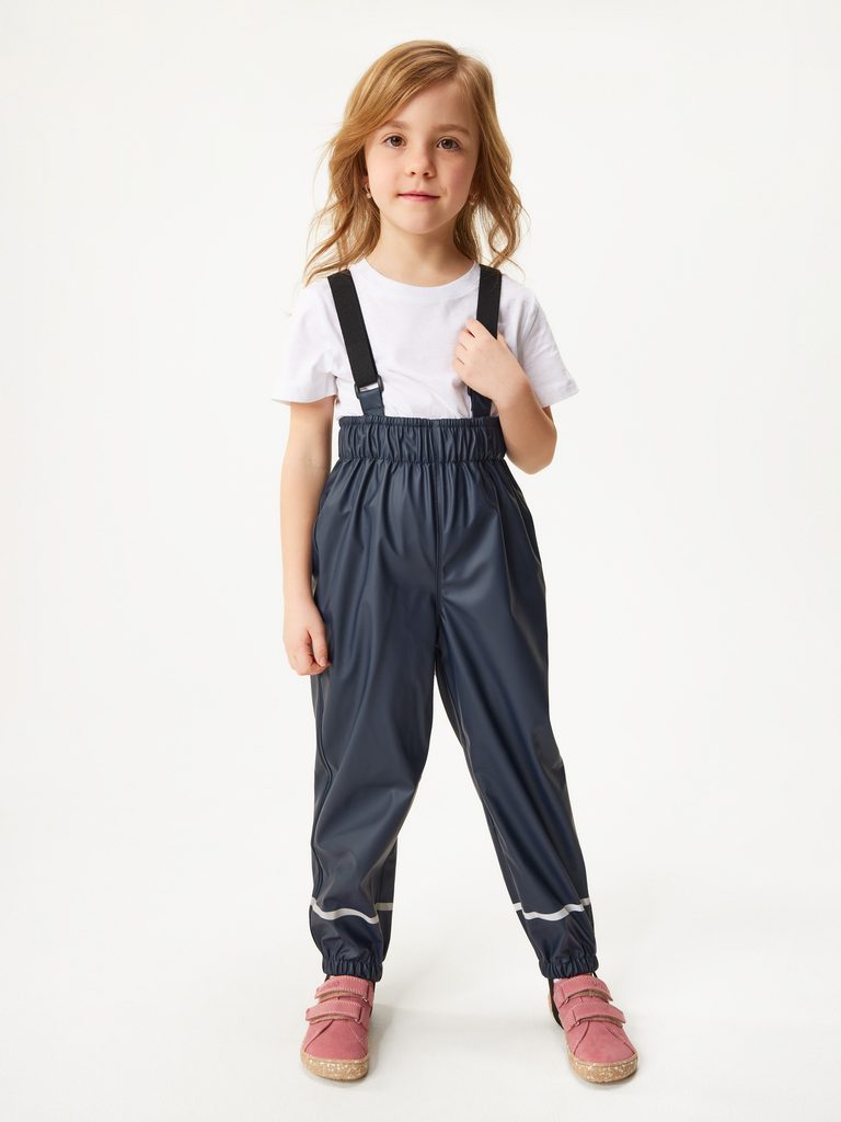 Odolné nepromokavé kalhoty udrží děti v suchu i při hrách v blátě a dešti. Díky gumě v pase, nastavitelným kšandám a pružným lemům v nohavicích perfektně sedí a neomezují pohyb. Reflexní prvky na nohavicích zvyšují bezpečnost při snížené viditelnosti.