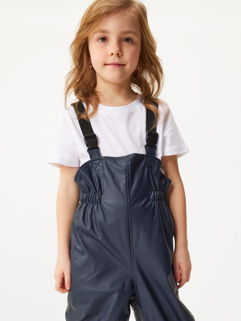Odolné nepromokavé kalhoty s fleecem udrží děti v suchu a teple i při hrách v blátě a dešti. Pogumovaný materiál se zatavenými švy nepropustí vodu, zatímco lacl s kšandami a gumičky v nohavicích zajistí perfektní přizpůsobení. Reflexní prvky na nohavicích zvyšují bezpečnost při snížené viditelnosti.
