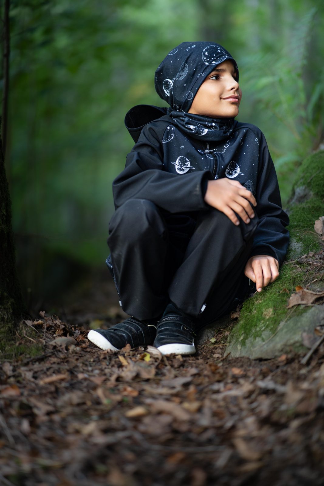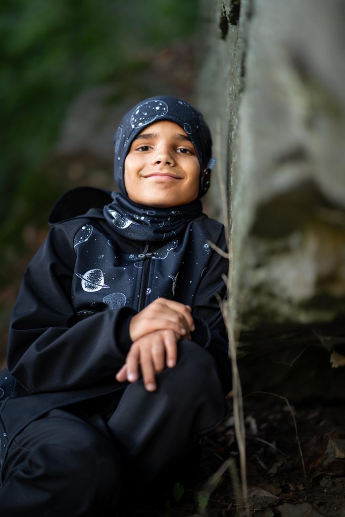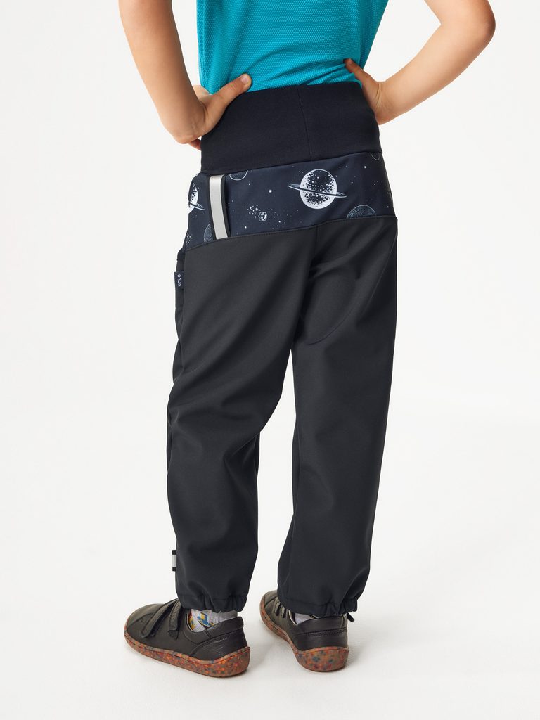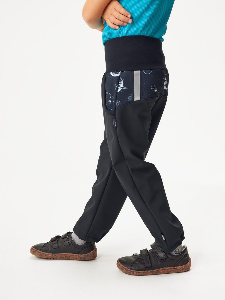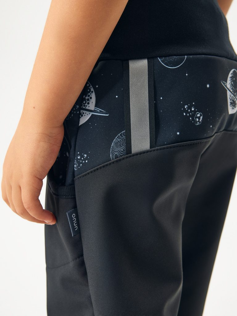 Unuo, Dětské softshellové kalhoty s fleecem Basic, Černá, Planety