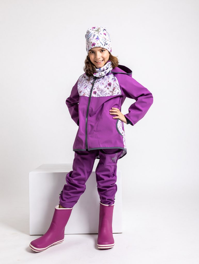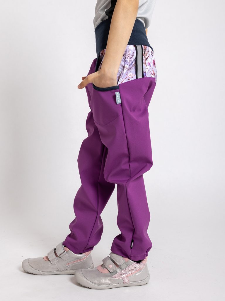 Unuo, Dětské softshellové kalhoty s fleecem, Ostružinová, Louka
