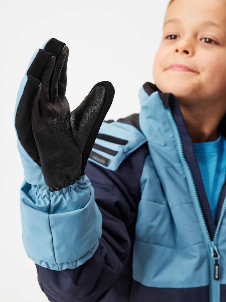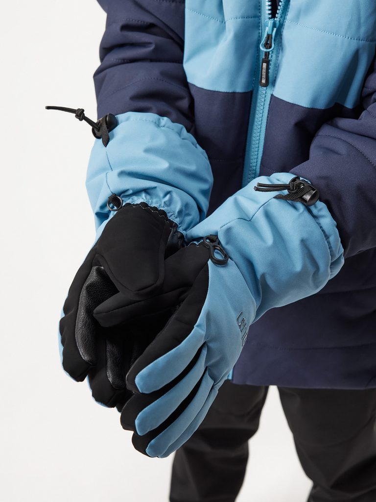 Tyto lyžařské rukavice myslí na vše, co děti při zimních radovánkách potřebují. Mají prodloužený střih, takže se snadno natáhnou přes rukáv bundy a ochrání tak zápěstí před sněhem. Brzdička umožňuje rukavice stáhnout podle potřeby a díky vnitřní gumičce na zápěstí se jen tak neztratí. Výšivka s logem unuo dodává rukavicím stylový detail. Praktické, teplé a připravené na každou koulovačku i lyžovačku. Zimní kolekce byla navržena v České republice a ušita zahraniční šicí dílnou.