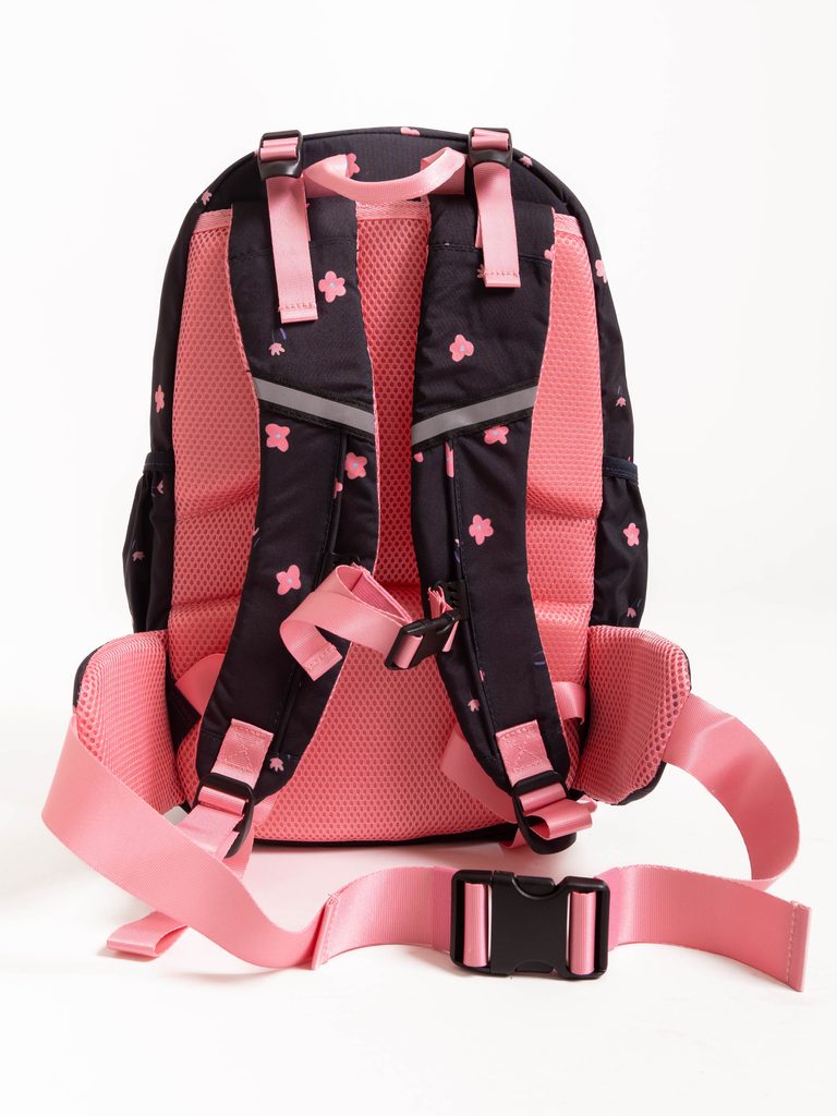 Batoh je vybaven polstrovanými zády a nastavitelnými ramenními popruhy, což zajišťuje pohodlné nošení, zatímco prsní a bederní pás poskytují dodatečnou podporu a stabilitu při nošení všech nezbytností. Uvnitř najdete prostornou kapsu pro knížky, svačiny a oblíbené hračky, zatímco malá zipová kapsa na vnějšku usnadní rychlý přístup ke všem drobnostem. Boční kapsa na láhev pomůže udržet dostatečný příjem tekutin vašich dětí během dne.