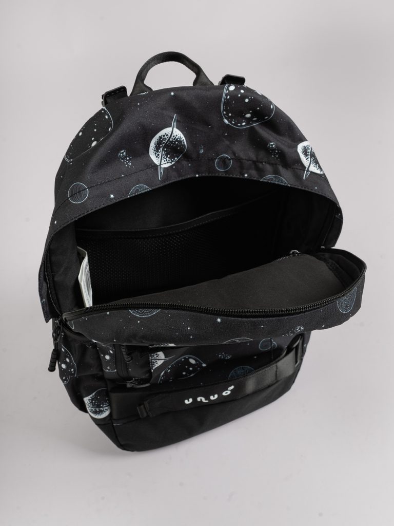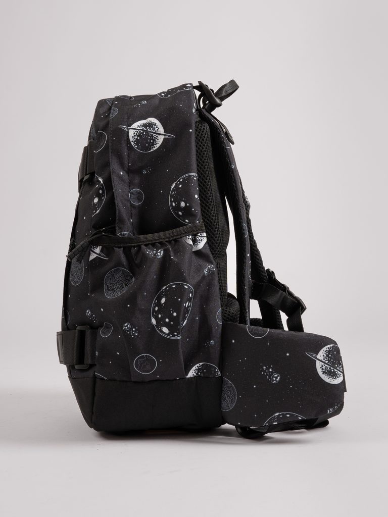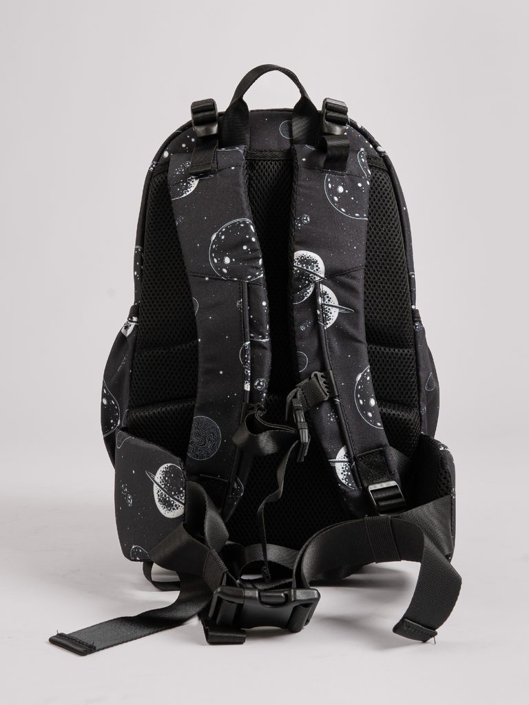 Batoh je vybaven polstrovanými zády a nastavitelnými ramenními popruhy, což zajišťuje pohodlné nošení, zatímco prsní pás poskytuje dodatečnou podporu a stabilitu při nošení všech nezbytností. Uvnitř najdete prostornou kapsu pro knížky, svačiny a oblíbené hračky, zatímco malá zipová kapsa na vnějšku usnadní rychlý přístup ke všem drobnostem. Boční kapsa na láhev pomůže udržet dostatečný příjem tekutin vašich dětí během dne.