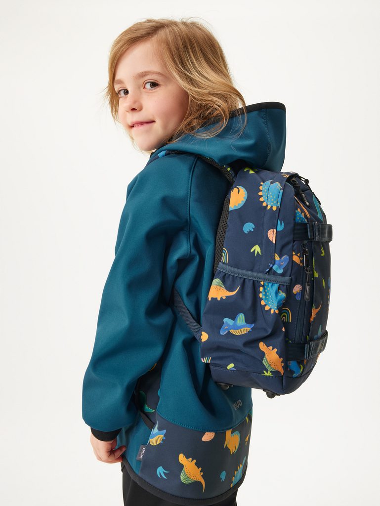 Batoh je vybaven polstrovanými zády a nastavitelnými ramenními popruhy, což zajišťuje pohodlné nošení, zatímco prsní pás poskytuje dodatečnou podporu a stabilitu při nošení všech nezbytností. Uvnitř najdete prostornou kapsu pro knížky, svačiny a oblíbené hračky, zatímco malá zipová kapsa na vnějšku usnadní rychlý přístup ke všem drobnostem. Boční kapsa na láhev pomůže udržet dostatečný příjem tekutin vašich dětí během dne.
