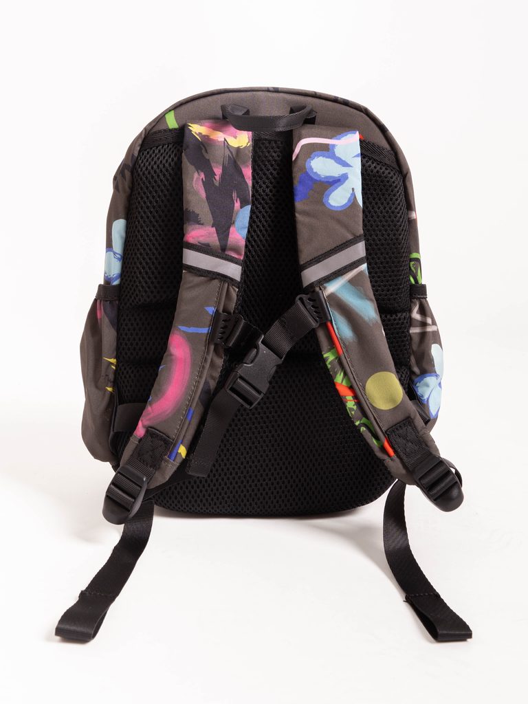 Batoh je vybaven polstrovanými zády a nastavitelnými ramenními popruhy, což zajišťuje pohodlné nošení, zatímco prsní pás poskytuje dodatečnou podporu a stabilitu při nošení všech nezbytností. Uvnitř najdete prostornou kapsu pro knížky, svačiny a oblíbené hračky, zatímco malá zipová kapsa na vnějšku usnadní rychlý přístup ke všem drobnostem. Boční kapsa na láhev pomůže udržet dostatečný příjem tekutin vašich dětí během dne.