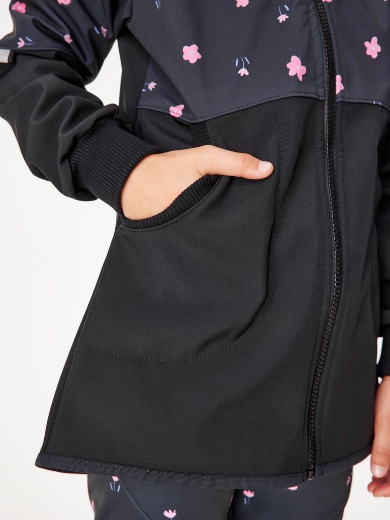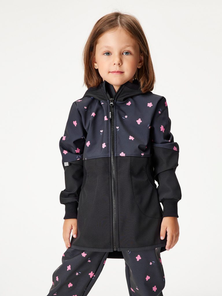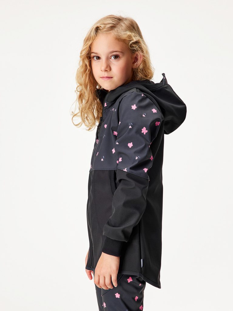 Unuo, Dívčí softshellový kabát s fleecem Street, Černá, Květiny