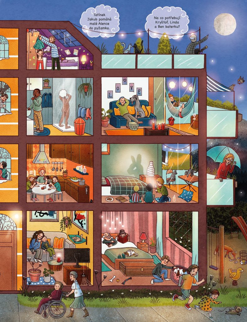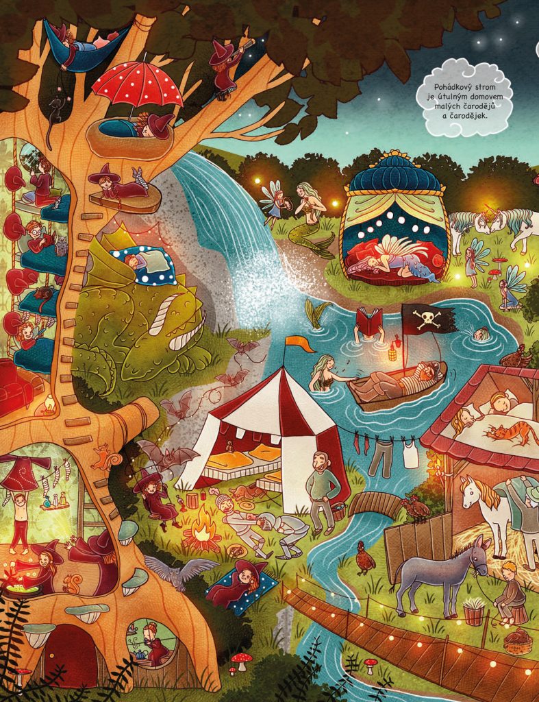 Je čas jít na kutě? Pak je taky ten správný čas sáhnout po téhle kouzelné obrázkové knížce! Najdete v ní bohatou inspiraci pro každodenní vypravování na dobrou noc… Třeba o tom, jak se ukládají ke spánku zvířátka na farmě. A taky lidé, kteří se o ně starají. V čem je to jiné ve městě? Nebo dokonce hluboko v lese? Jak nocují divoká zvířata? A co dělají hračky v obchodě, když všechno kolem spí? Podívejte se, jak ožívá pohádkový svět. S touhle knížkou se do něj můžete vydávat znovu a znovu. Dobrou noc a sladké sny!