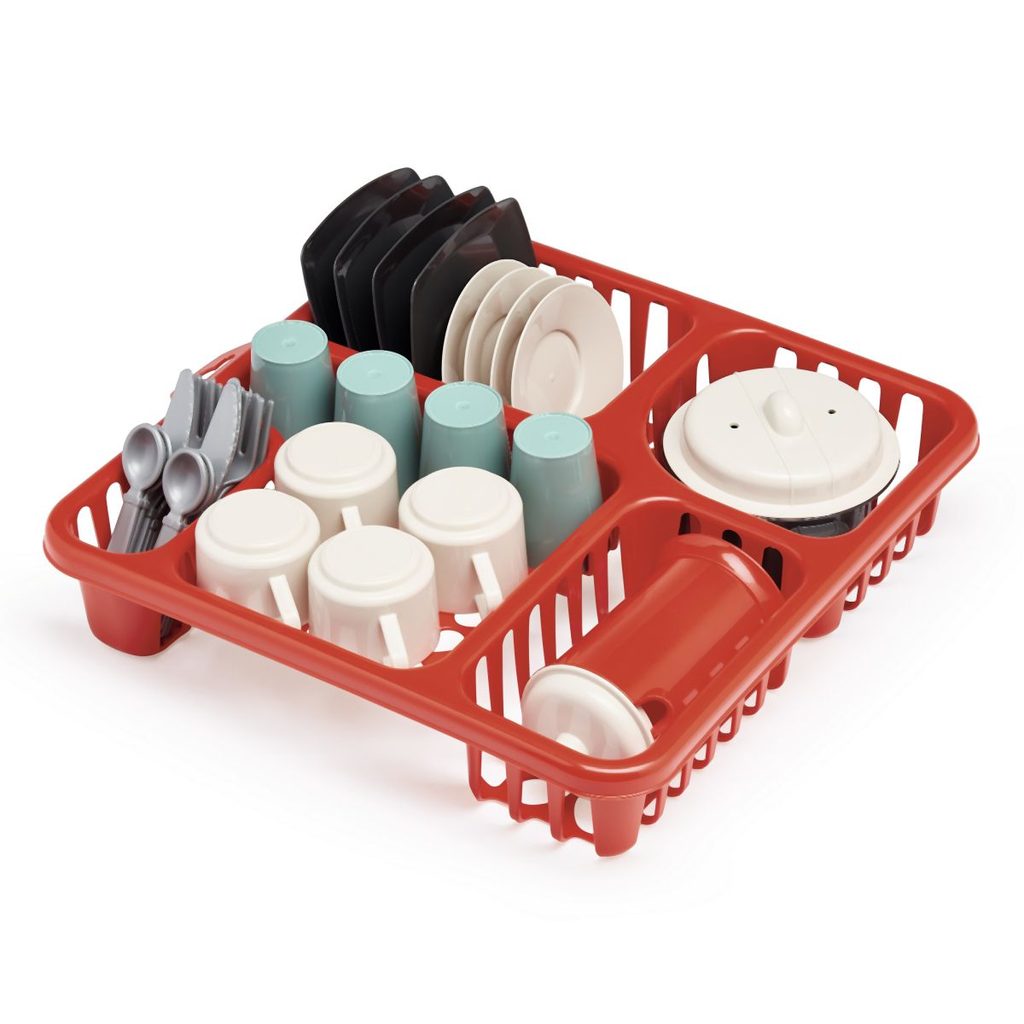 Velká sada nádobí s odkapávačem obsahuje hrníčky, příbory, talíře, hrnec s poklicí, konvičku s poklicí a šálky s podšálky. Rozměry odkapávače 29,5 x 10 x 29 cm. Věk: 18M+ Velká sada nádobí s odkapávačem obsahuje hrníčky, příbory, talíře, hrnec s poklicí, konvičku s poklicí a šálky s podšálky. Rozměry odkapávače 29,5 x 10 x 29 cm. Věk: 18M+