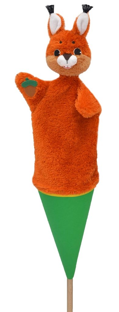 Velký textilní kornoutový maňásek, ovládaný dřevěnou tyčkou, s otvorem pro ovládání ručiček. Vyrobeno v ČR