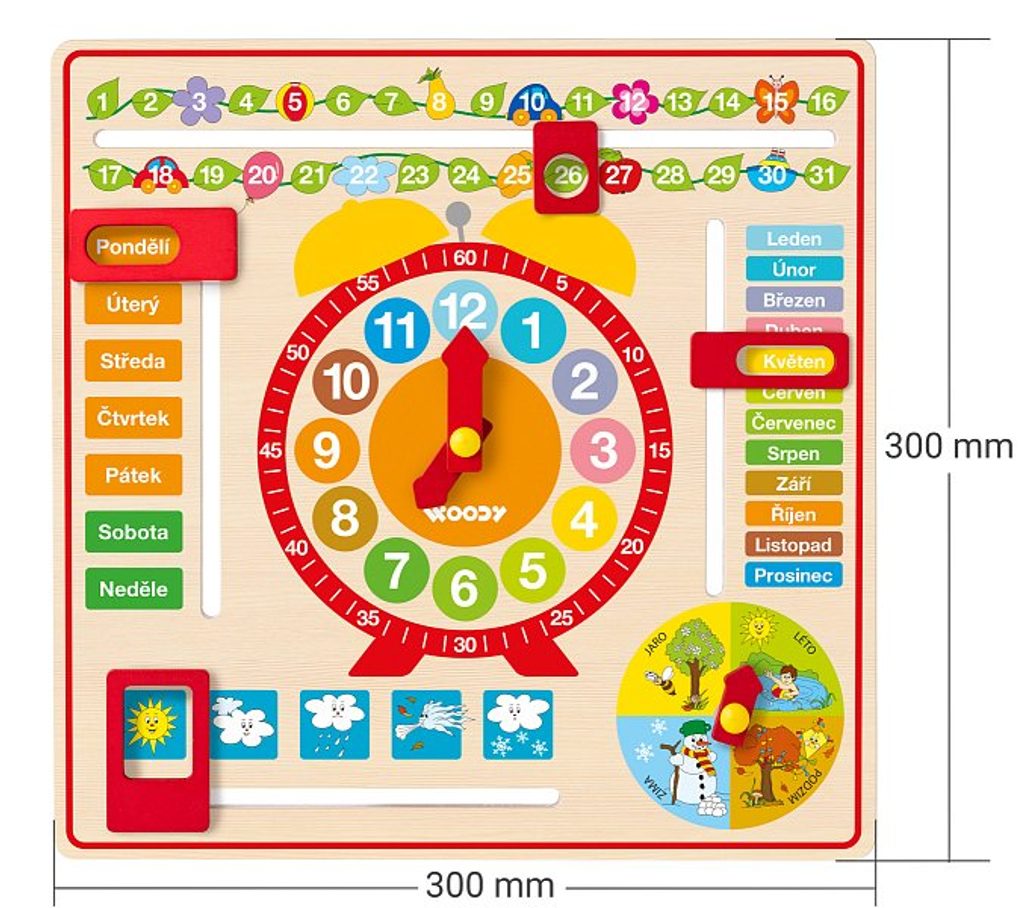 Víceúčelový kalendář s hodinami CZ
