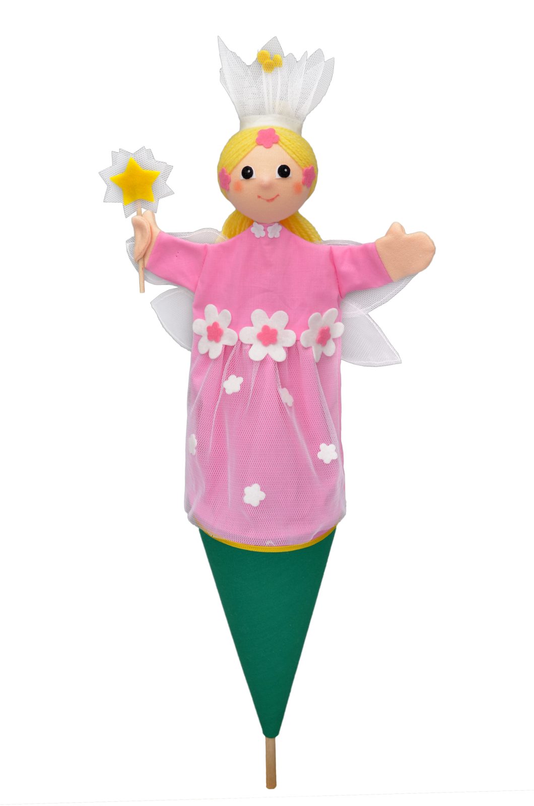 Velký textilní kornoutový maňásek, ovládaný dřevěnou tyčkou. Vyrobeno v ČR.