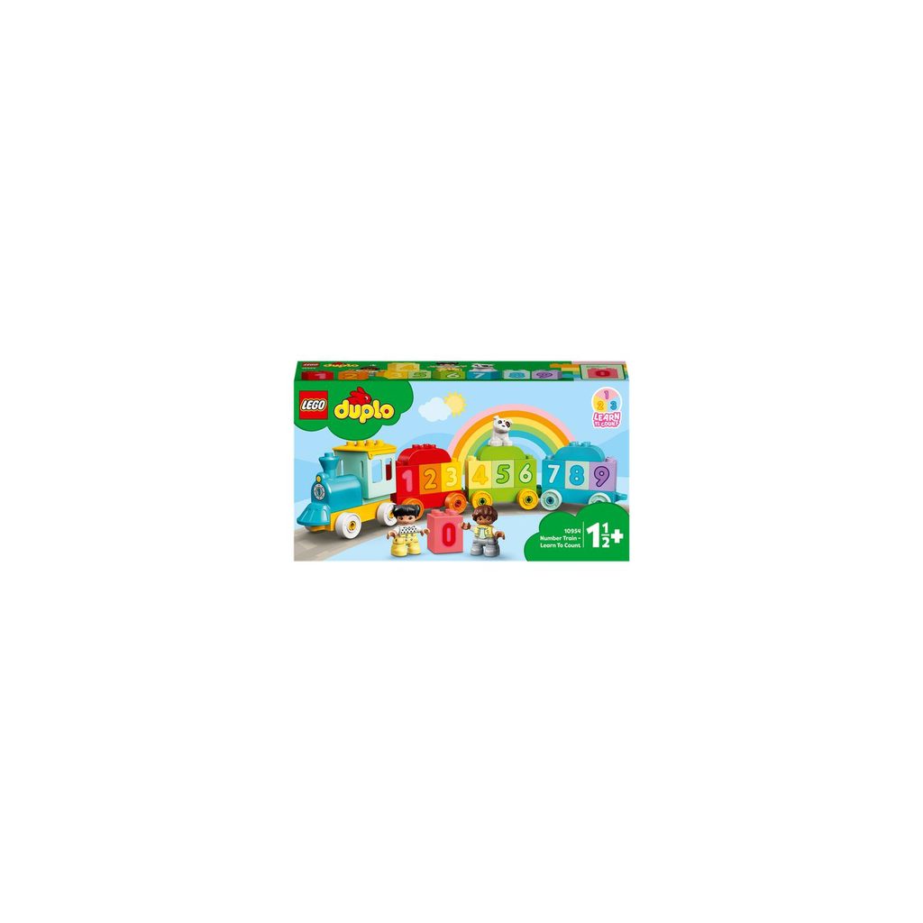 Nenechte si ujet barevný model ze sady LEGO® DUPLO® Vláček s čísly – Učíme se počítat (10954). S 10 očíslovanými kostkami, které mohou děti nakládat a vykládat, stavět na sebe nebo řadit, a DUPLO figurkami dívky, chlapce a pejska nebude brát hraní ani zábava konce.