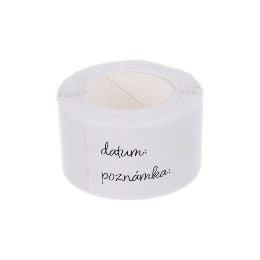 Voděodolné samolepky v roli která obsahuje 125 kusů, se neodlupují, nerozpíjejí ani nedeformují při kontaktu s vodou. Jsou vhodné pro označení potravin, kosmetiky a podobných výrobků. Samolepky jsou doplněny dvěma řádky s nápisy „Datum:“ a „Poznámka:“ s prostorem pro doplnění vlastního textu. Materiál: syntetický papír PP. Rozměry: d. 7,5 cm, š. 2,5 cm. Designed by Orion.