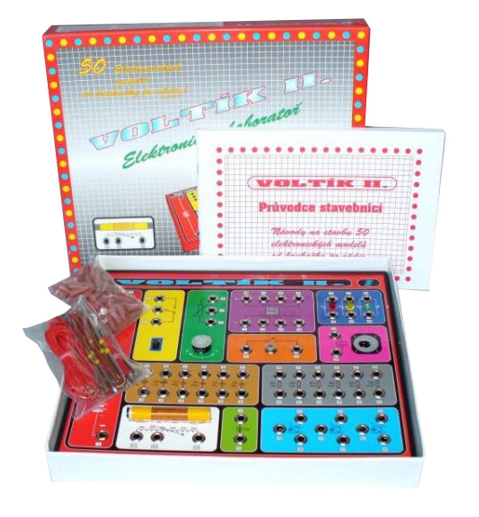 Stavebnice obsahuje vše pro stavbu 50 elektronických modelů bez pájení. Vhodné pro děti od 10 let.