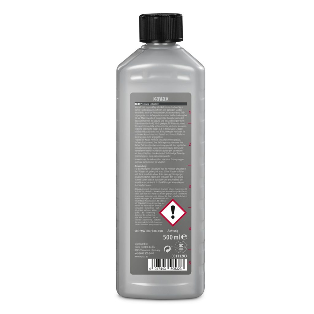 Xavax Premium, tekutý odvápňovač pro kávovary a jiná zařízení, max. 15 barů, 500 ml = 5 použití